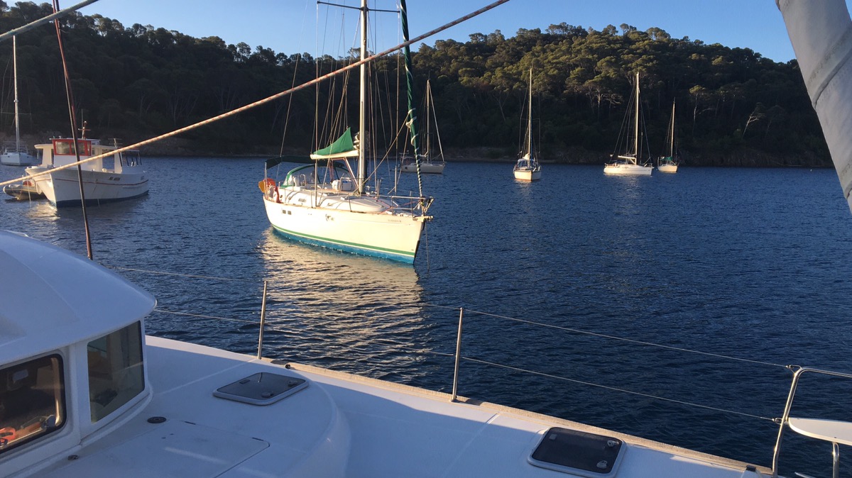 Um ca.9:30 lichteten wir den Anker und bei ca.20 Knoten los.Unter Genua und mit achterlichem Wind. Der Mistral frischte kräftig auf und blies dann mit 25 – 30 Knoten. Recht kräftig. Damit es uns nicht langweilig werden sollte, legte der Wind auf 35 Knoten zu. Da beschloss der Autopilot eine Pause einzulegen und drehte das Boot in den Wind. Ab jetzt war für die nächsten 10 Meilen Segeln und Steuern von Hand angesagt. Bei dem Wind und der Welle quer ab, kam ordentlich Wasser über. Also eine richtige Salzwasserdusche. In der Bucht von Cannes haben wir dann einen schön welligen und windigen 😫⚓️Platz bekommen.Aber die warme Dusche nach der Tour war super. Das ist schon ein tolles Feature unserer Baradal. Eine Dusche mit Platz und guter Wasserversorgung. Aber wenn der. Anker gut liegt ist die Stimmung letztlich perfekt.