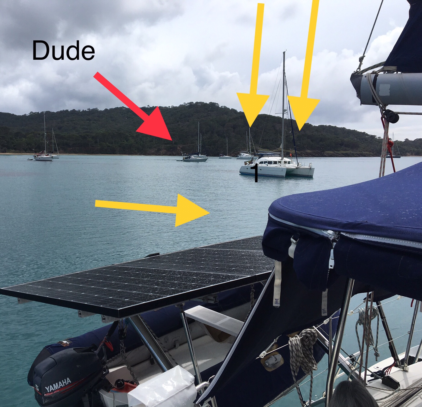 Der Westwind bringt etwas Welle in die Bucht, also sind wir etwas näher zum Westrand gefahren und haben dort den Anker platziert.