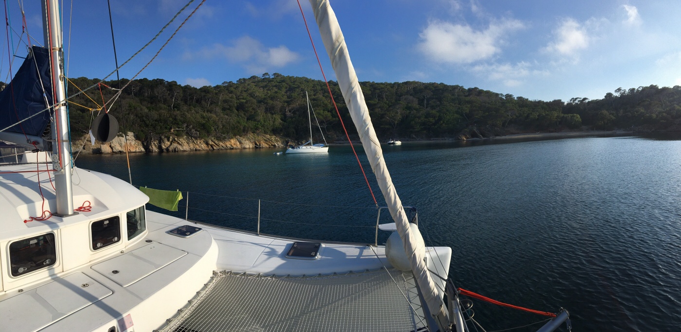 Es ist erstaunlich, wieviele Katamarane hier im Mittelmeer rumfahren. Gestern lagen drei Lagoon 380 in Reihe in der Bucht