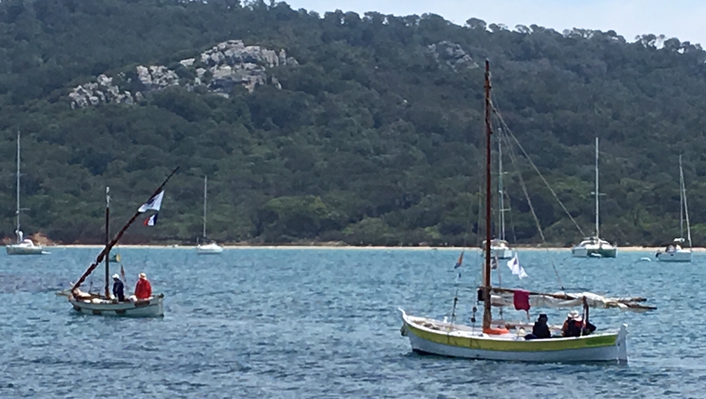 Hier vor Porquerolles gibt es viel zu sehen. Heute war eine Gruppe mit historischen Fischerbooten hier.