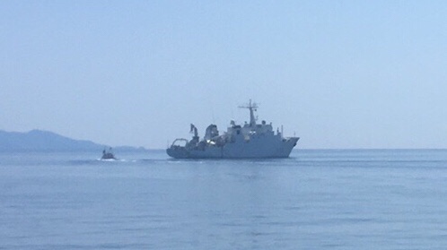 Das “Mutterschiff” hat uns schon gestern Abend irritiert.