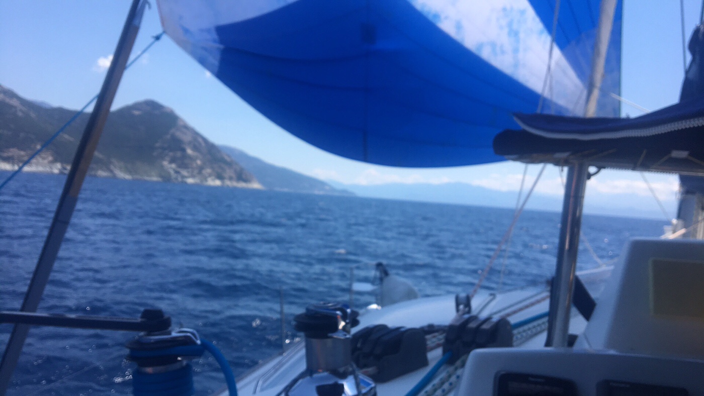 Macht Sinn, die Karten sind hier nicht sehr genau. Also sind wir flott los und bei wenig Wind und viel Sonne gen Norden zum Cap Corse motort.