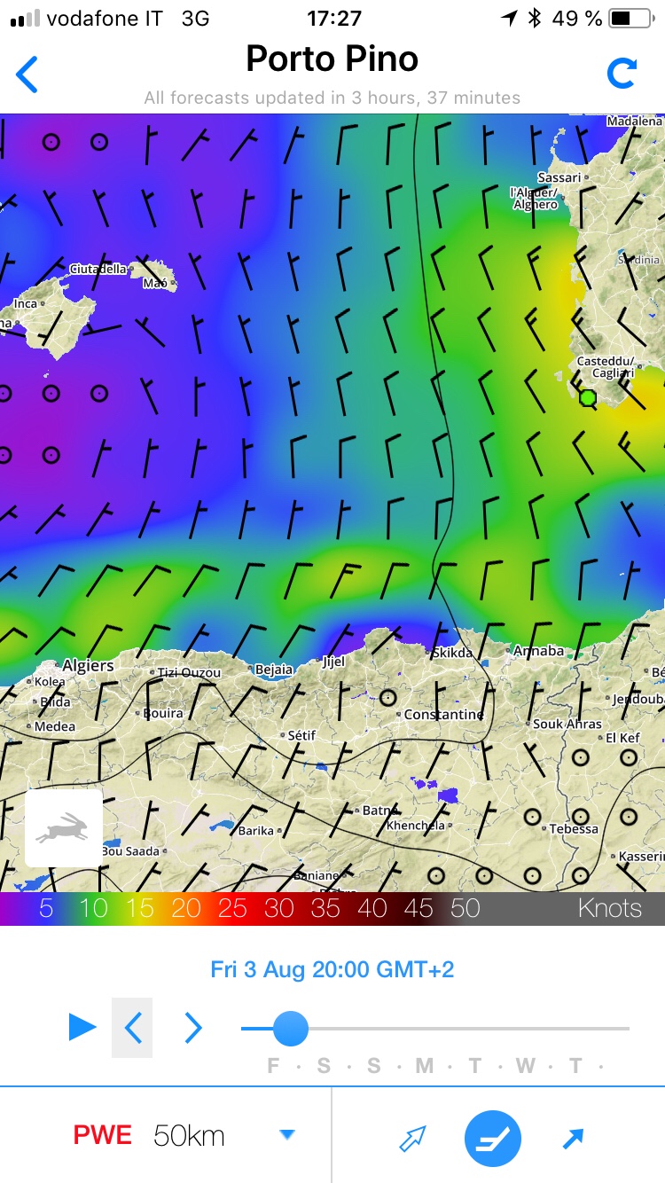 ist die bisher längste Strecke, die wir am Stück gesegelt sind. Als Starttermin wählten wir den Freitag, da der Wind für zwei Tage konstant aus Nord kommen sollte. Für Sardinien waren mehrere Tage Gewitter und schlechtes Wetter angesagt. Also Freitag Mittag Anker hoch und los.