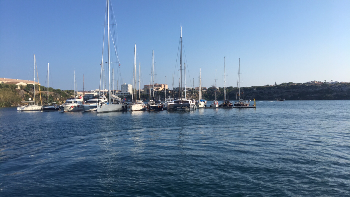 Aber der Reihe nach. Angekommen sind wir in Mahón, oder Maó, wie es hier immer geschrieben wird. Der Naturhafen ist einer der größten auf der Welt. Die Einfahrt spektakulär, denn es knubbeln sich Fähren und Freizeitboote in munterer Reihe. Der Ankerplatz hat uns nicht gefallen. Also sind wir los zu einem der ” floating pontons”. Das sind Stege die mitten im Wasser befestigt sind. Ungewöhnlich aber preiswert. Und Wasser gab es auch. Strom machen wir ja mit Sonne genug. Die Stadt fanden wir großartig. Alles drin, alles dran. Einen Abend haben wir ein Konzert einer lokalen Gruppe besucht, dann sind wir beim Alchemisten (Gin-Bar) versackt und auch die Tapasorgie am Fischmarkt haben wir nicht ausgelassen.