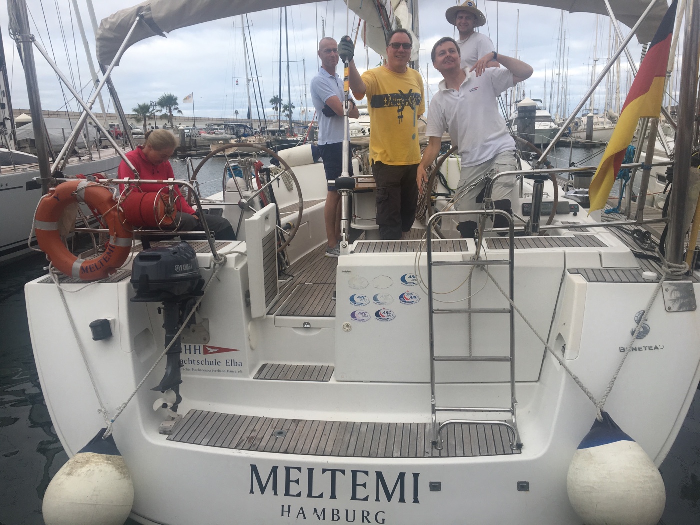 Die ARC geht uns etwas auf die Nerven. Da kommen teilweise riesige Schiffe rein, so Kaliber 5Mio€ und mehr. Show mit Fähnchen, wichtig reden ( ja ja, die kleinen 55er Hanses, das sind ja nur Küstenrutscher . . . ). Aber die einfachsten Anlegemanöver gehen schief weil nichts besprochen und eingeübt wurde.