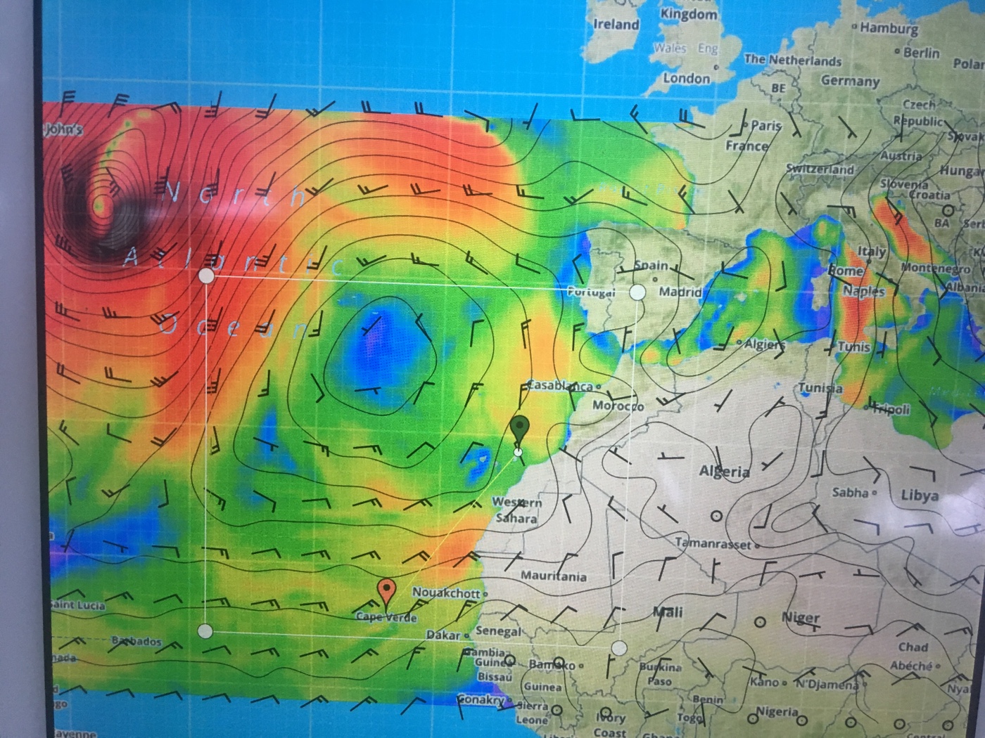 Aber das ist natürlich nicht wie DSL Zuhause 🏠. Obwohl es wie eine Fritzbox funktioniert. Es geht seeeehr gemächlich und Internet ist reine Theorie. Aber das Wichtigste: wir können kommunizieren und bekommen aktuelle Wetterberichte auch mitten auf dem Atlantik. Der Empfang sieht so aus