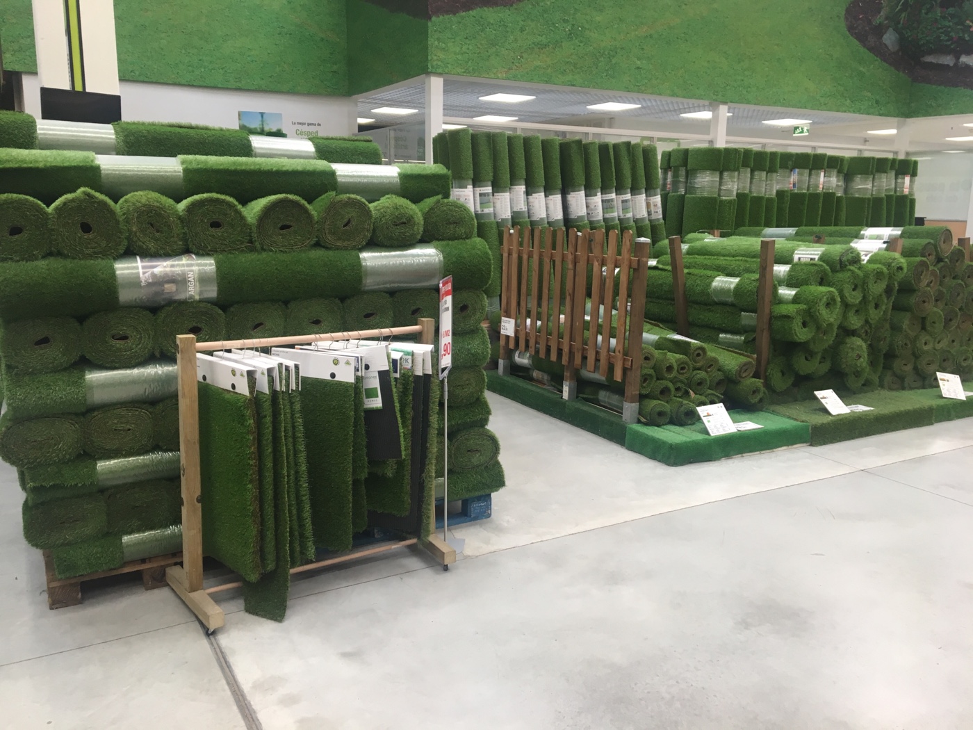 Spanien hat uns da positiv überrascht! Die Kette Leroy Merlin hat ein super breites Sortiment. Sanitär (Wasserfilter) und Armaturen in jeder Form und Qualität. Allein die Abteilung für Kunstrasen belegt den Platz eines typischen französischen Baumarktes.