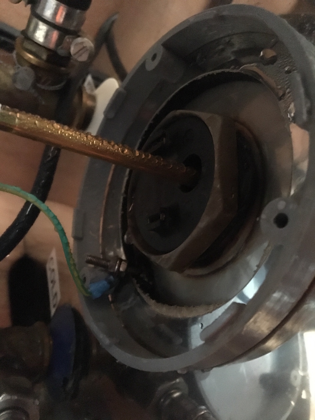 Um es kurz zu machen, unser Warmwasserbereiter war mal wieder undicht. Diesmal hat sich die Dichtung am Heizelement rausgedrückt.