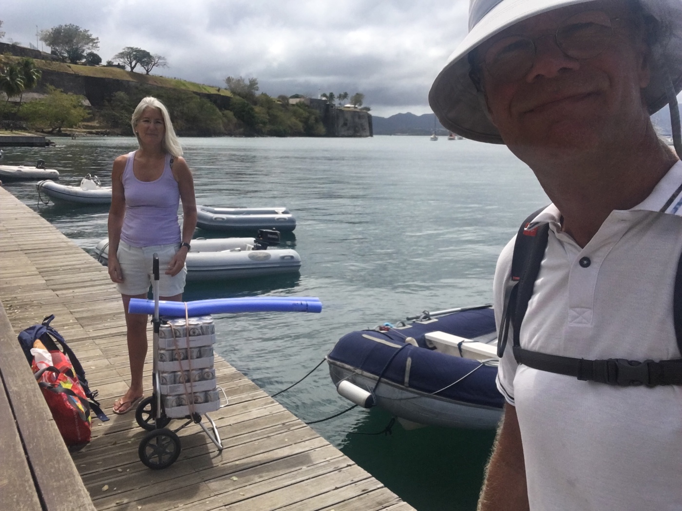 Fort de France war unser Etappenziel nach Dominica. Diese Überfahrt war schon speziell mit kräftig Wind schräg von vorne und Wellen bis 2 m in der Passage. Mit Genua und Motor sind wir gut rüber gekommen, ab Küstennähe war dann der Wind schwach und von vorne und es brummten die Motoren. Aber wir mögen Fort de France: gut Einkaufen, sauberes Wasser am Ankerplatz und Karnevalsmusik! Nett! Da ist die Fahrt schnell verdaut.