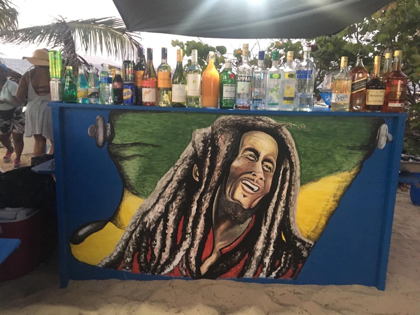 Irgendwann lagen wir dann vor Sandy Island. War das der Lohn der Angst? Wir wähnten uns in eine Ansichtskarte versetzt. Der Lobster war vorzüglich, und beim Essen hat man die Füsse im warmen, weissen Sand. Die Drinks wurden passend zum Sonnenuntergang ausgewählt.