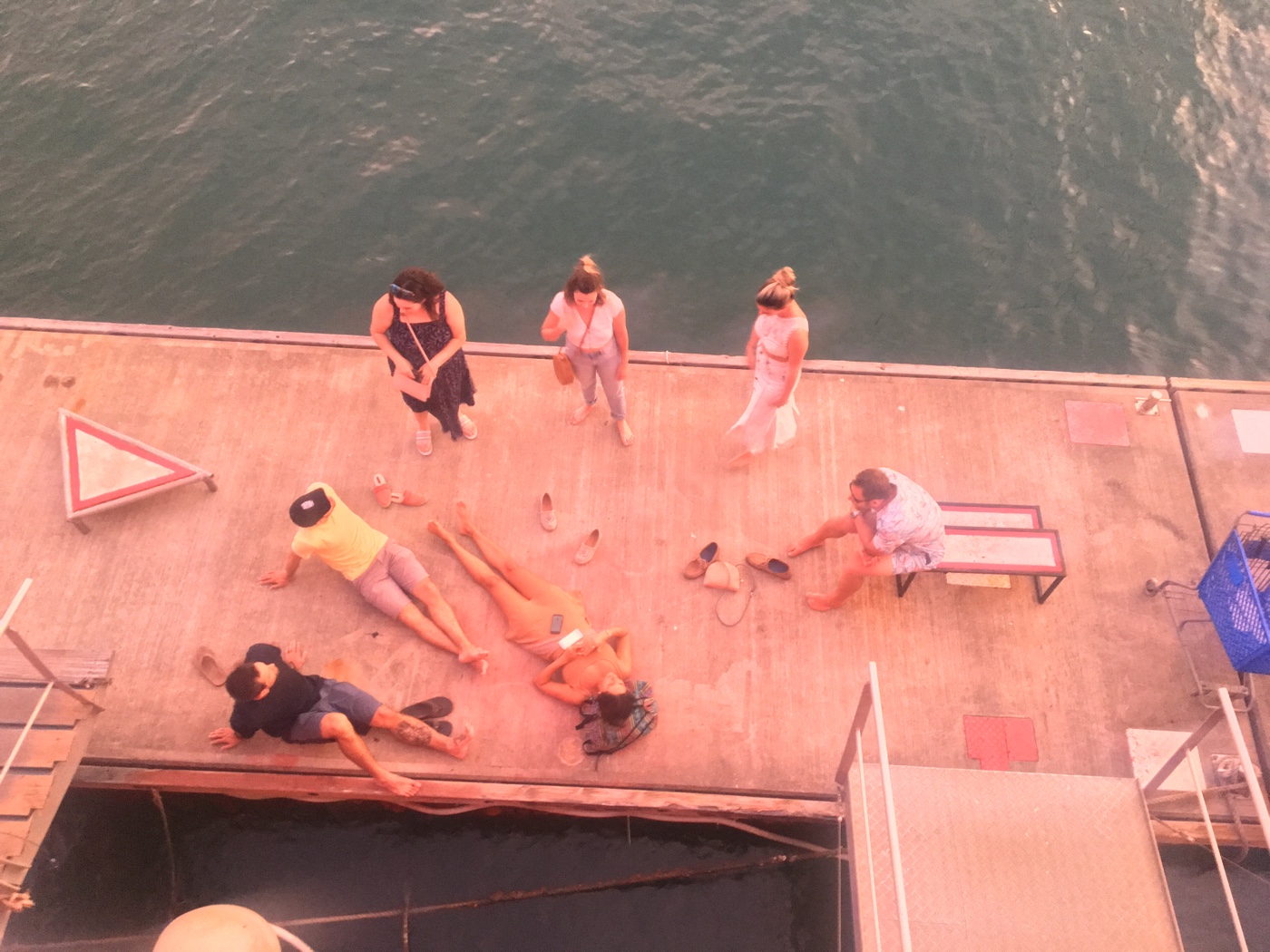 Das Bier zum Sonnenuntergang 🌅 schmeckt, lediglich was die Jugend auf dem Steg macht???