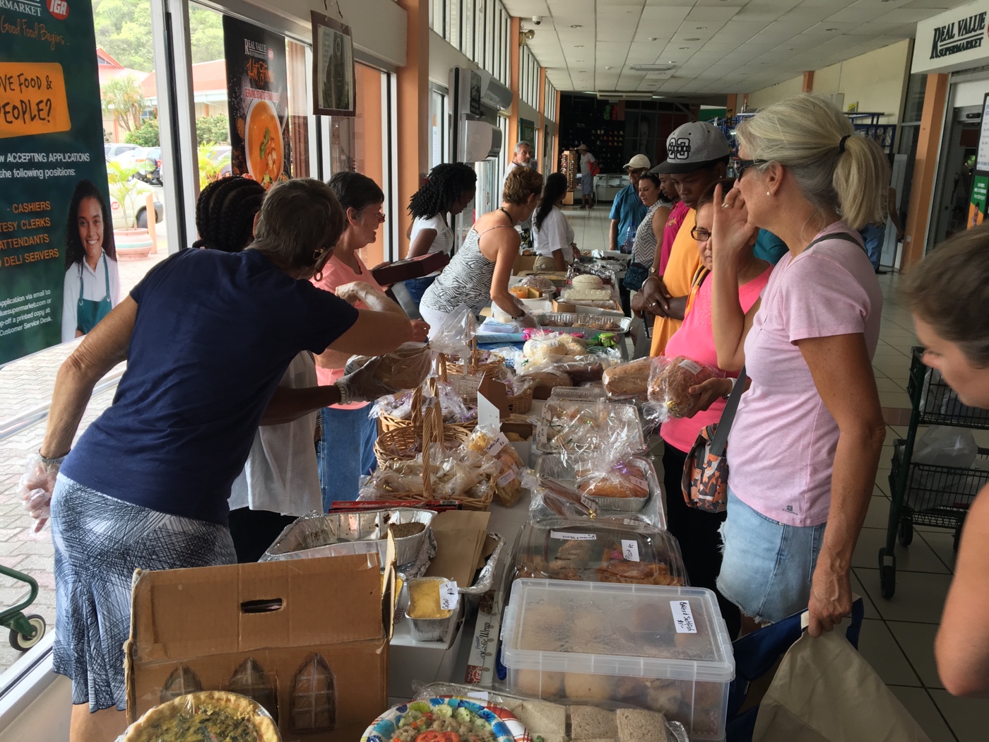 In der Spicelandmal wird kräftig für den Wiederaufbau der beim letzten Hurrikan zerstörten Kirche von St. George’s gesammelt. Die Gemeindemitglieder haben Kuchen und Brote gebacken. Da sind wir gerne dabei.