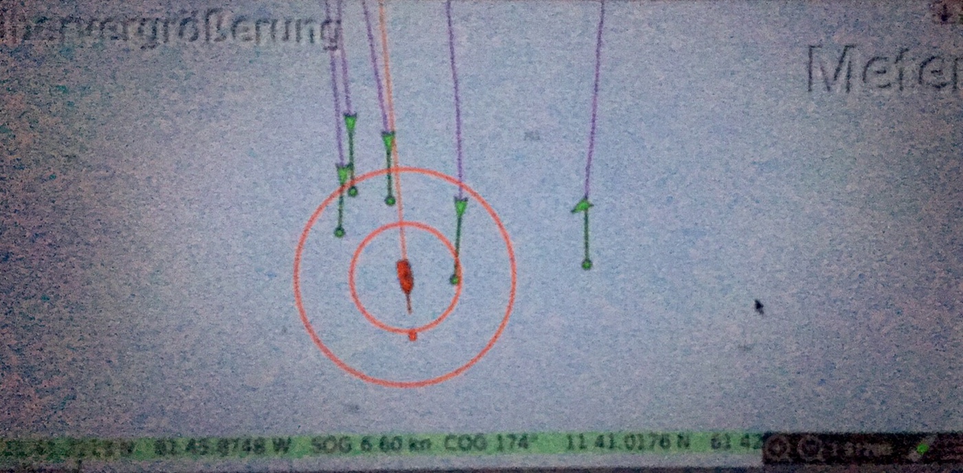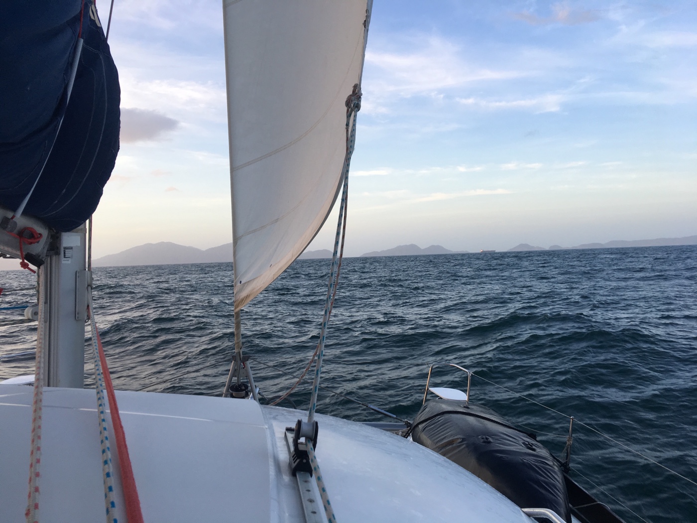 Die Coastguard (TTS Quinam) war wie versprochen zur Stelle. Wir haben sie nicht gesehen, da sie normal ohne aktives AIS fahren. Für uns haben sie es kurz aktiviert und das gibt Zutrauen.
