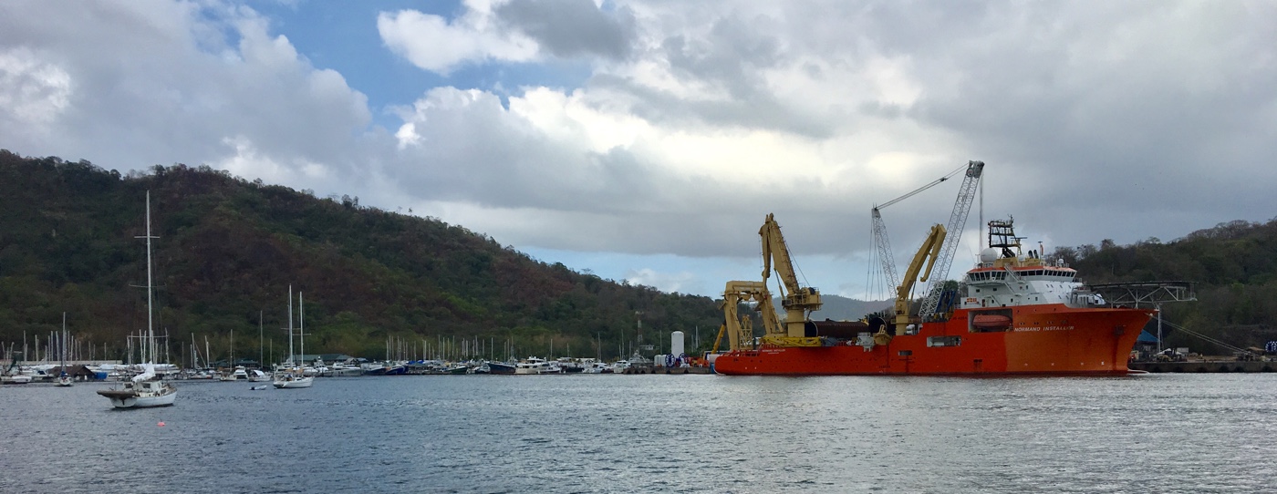 Wir haben einen Sommerliegeplatz in Chaguaramas gebucht. Das hört sich toll an, ist aber ein gepflegter Schotterplatz inmitten eines Industriehafens (Gasfelder)