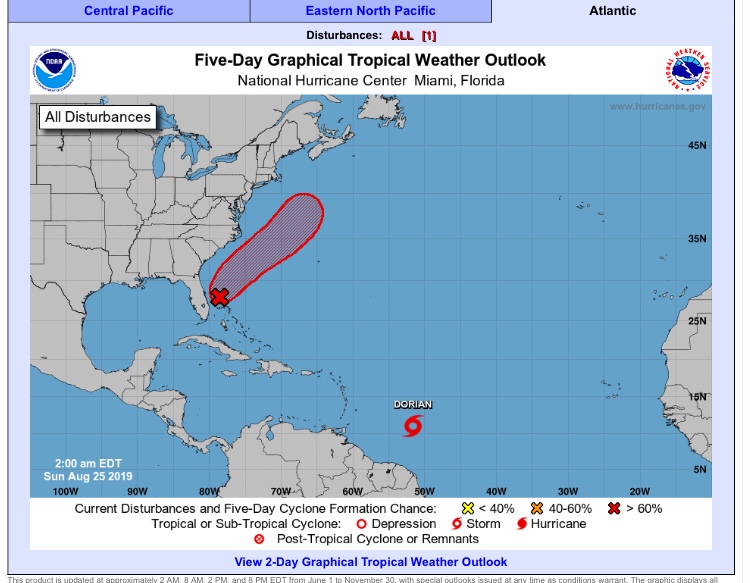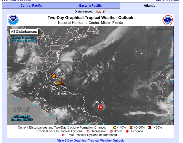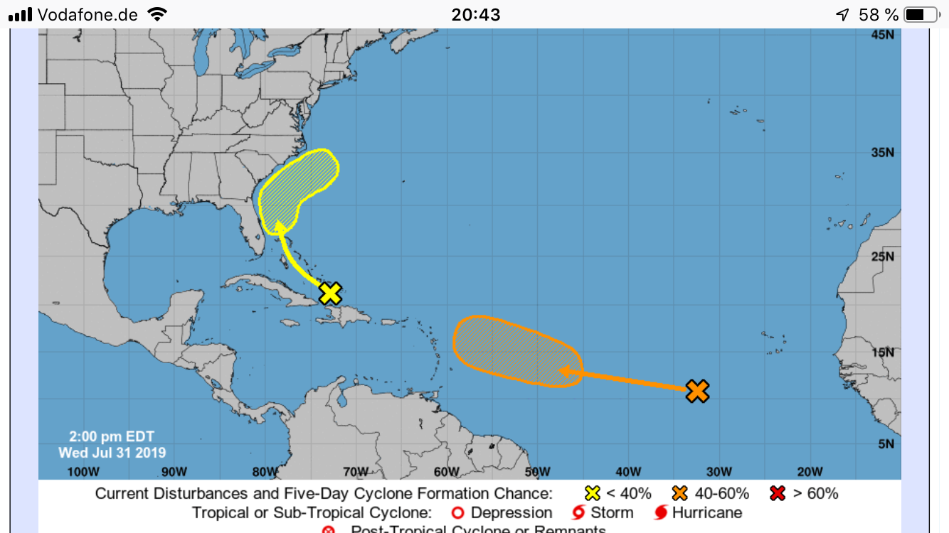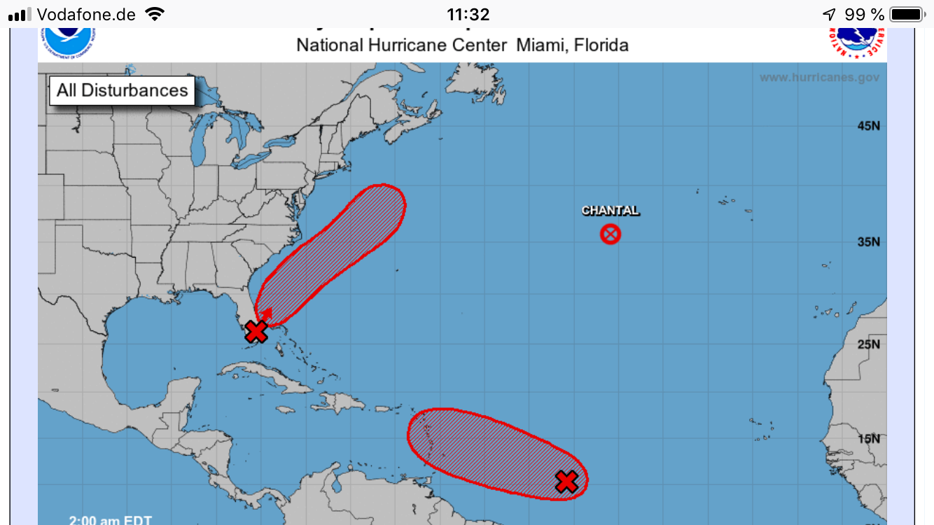 Am 25.08. gibt es einen neuen Namen. DORIAN hat sich gebildet. Also “named storm”.