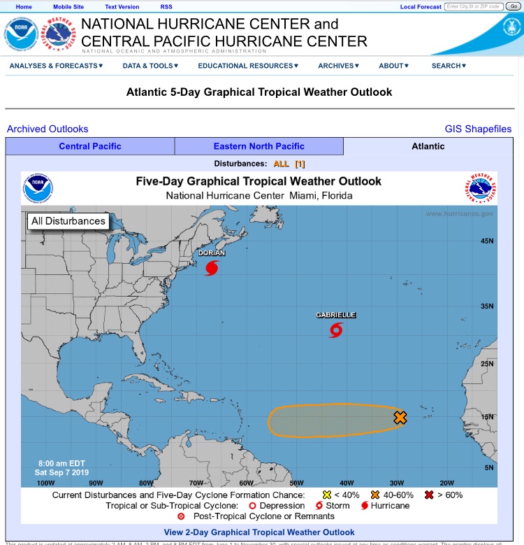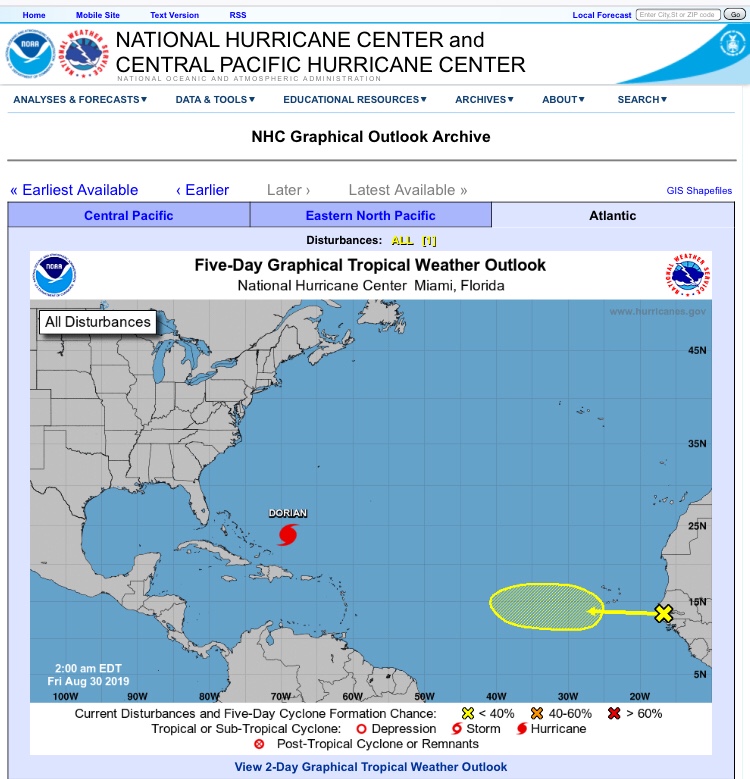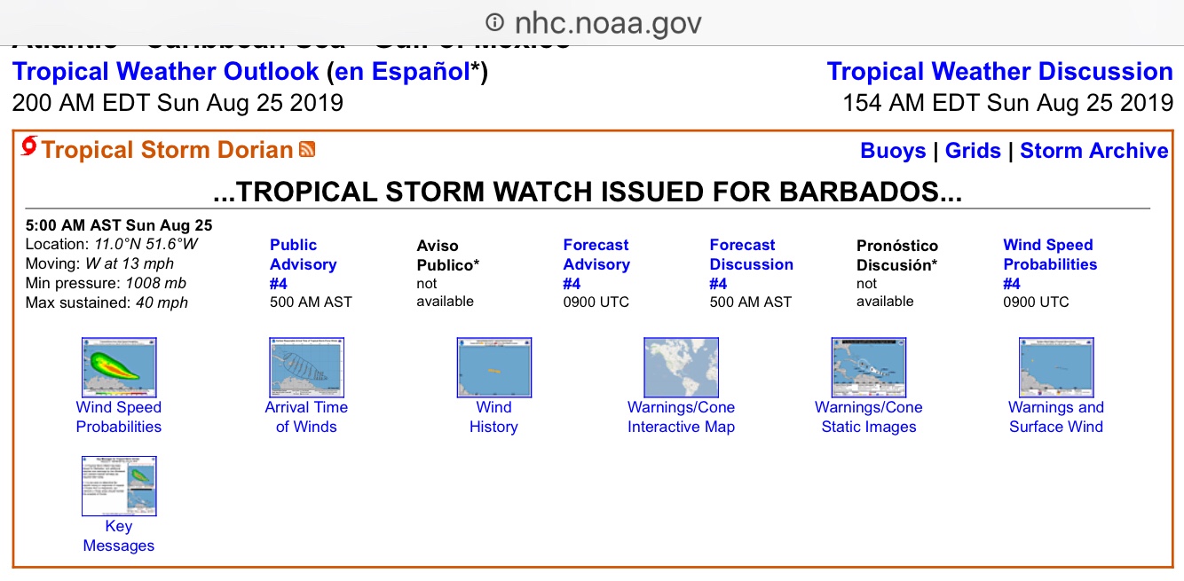 Dies ist die US amerikanische Organisation, die uns Seglern und allen anderen in der Region mit sehr sorgsam erarbeiteten Daten vor dem Schlimmsten rechtzeitig zu warnen versucht. Dafür muss man wirklich dankbar sein. Solche Informationen retten Leben und Besitztümer. Es werden detaillierte Hinweise für die betroffenen Gebiete gegeben.