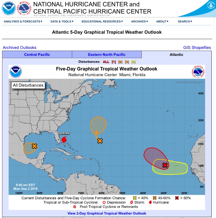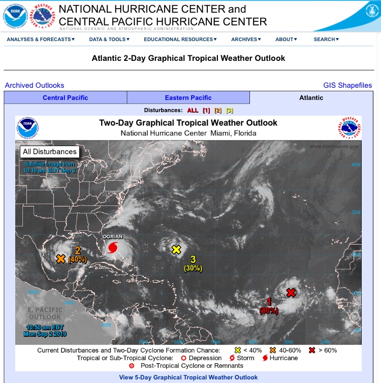 Am 28.08. wird es zunehmend ungemütlich: aus Dorian wird ein Hurrikan!