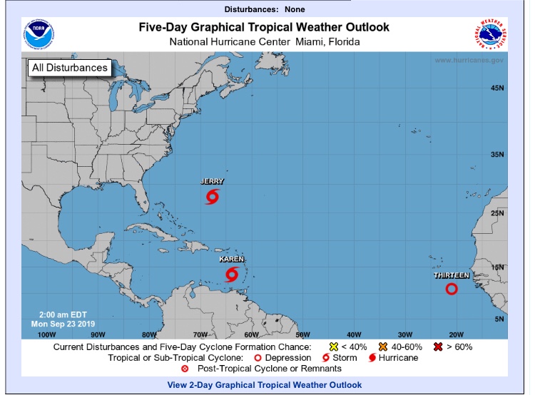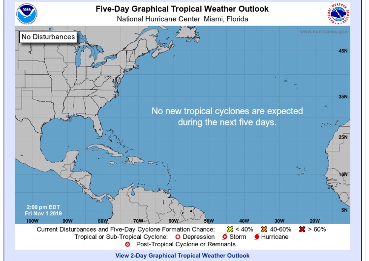 Heute am 01.11.2019 ist die Prognose sehr entspannt. Die Hurrikan Saison ist beendet.