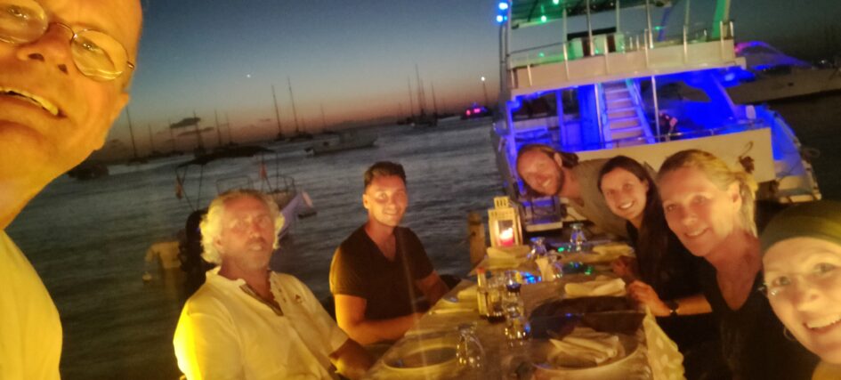Abends lecker in einem Restaurant am Ufer gegessen. Spagetti Langusto (mit Languste)😋. Für den nächsten Tag hatten wir die Weiterfahrt zur Isla Saona gegen späten Mittag geplant. Vorher war aber noch in Bayahibe ein neues Despatscho (Reiseerlaubnis) bei der Armada bis Punta Cana zu beantragen. Ein neuer Rekord: 3 Stunden Bürokratie, aber gute Laune😊. Nach dieser Anstrengung und ohne Mittagessen mussten wir schnell den Anker lichten und ab nach Saona. Die 12 nm wollten wir bis zum frühen Abend bewältigen um noch bei Licht den Anker zu setzen. Hat geklappt. Wir konnten flott segeln, teilweise 8 kn Fahrt ü.G.. Der Anker war mit Hilfe von Alex schnell gesetzt. Er hat beim Schnorcheln unseren Anker in einen Sandflecken gesetzt und Gut war es! 🙏🙏🙏 Somit stand dem Jahreswechsel nix mehr entgegen. 🥳🍀🌈