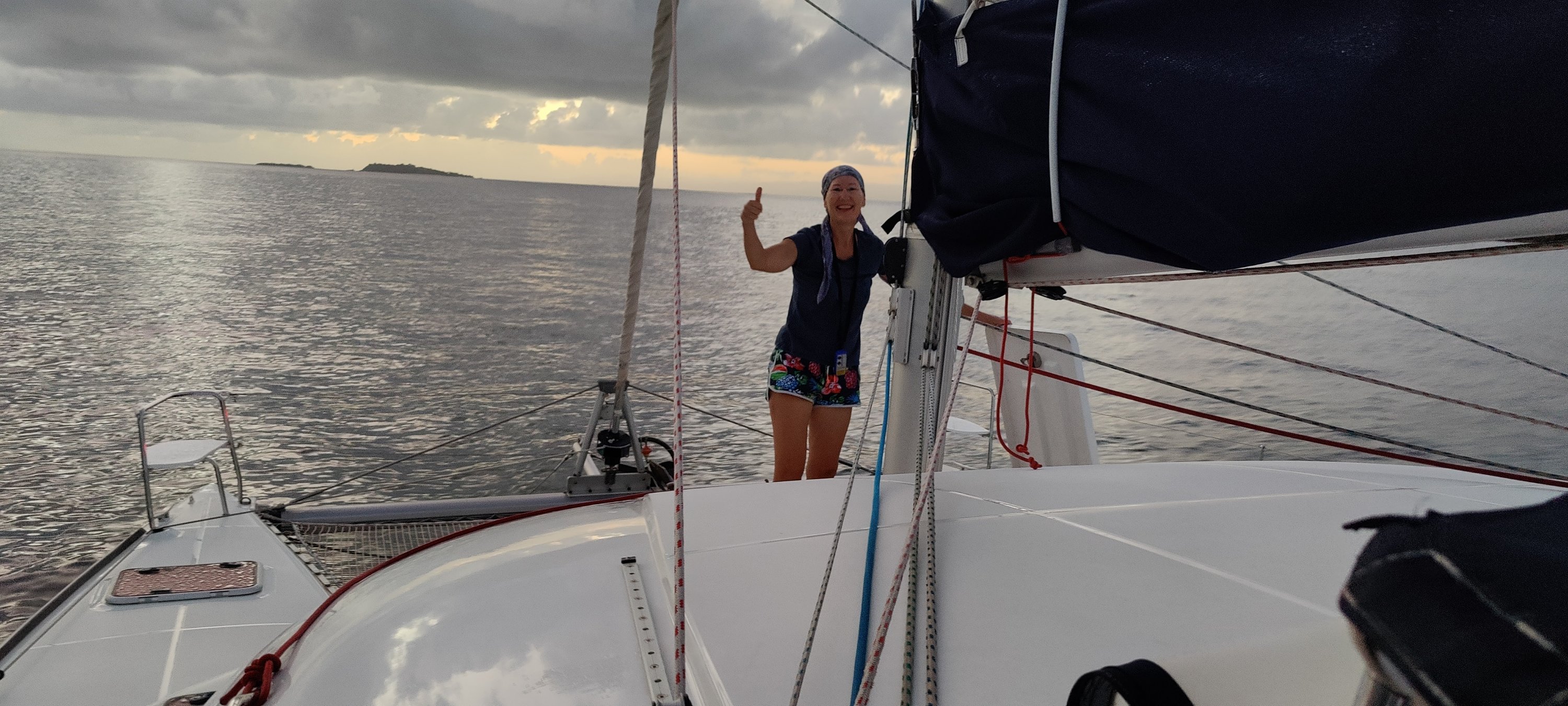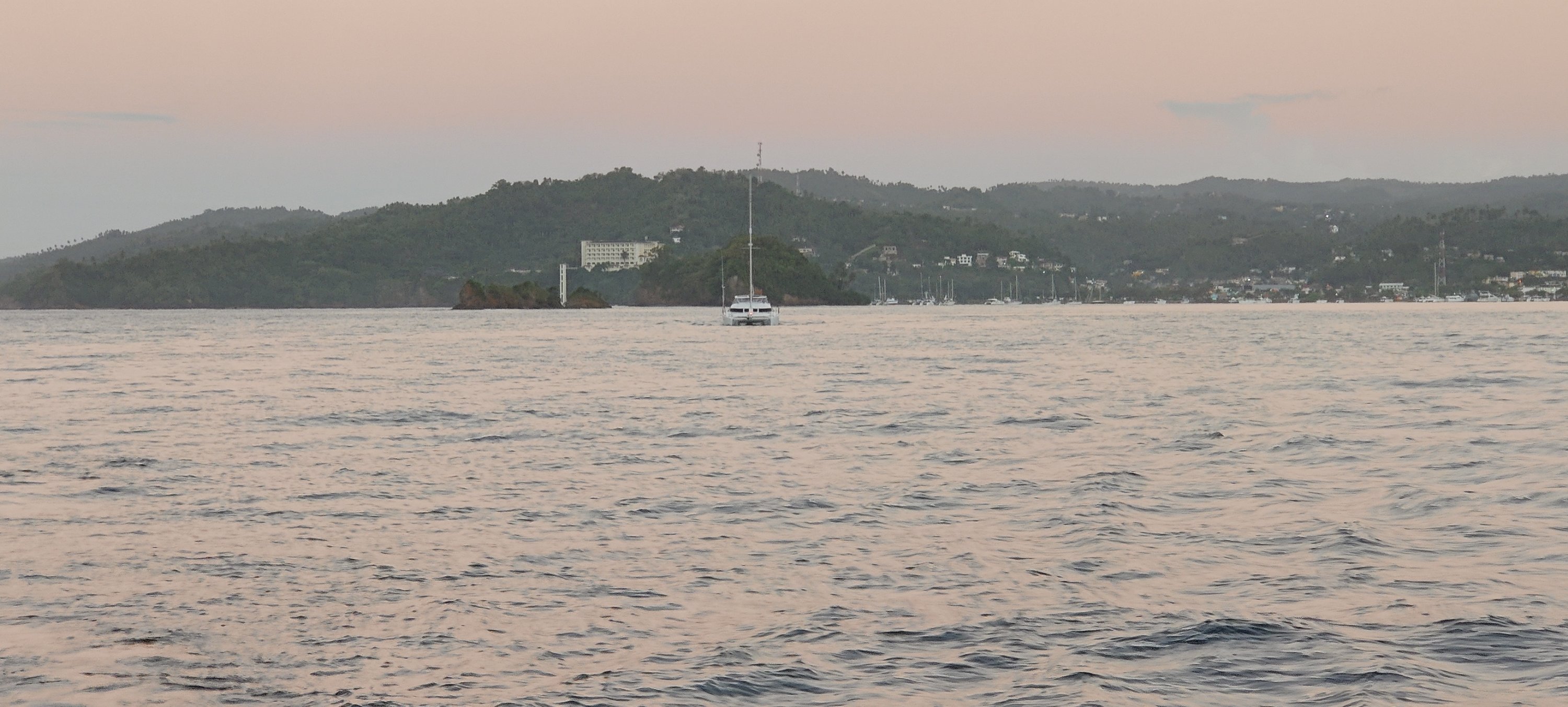 Mit der Schweizer Lagoon iCat von Sabine und Zoltan gleiten wir leise aus der Bucht von Samaná.