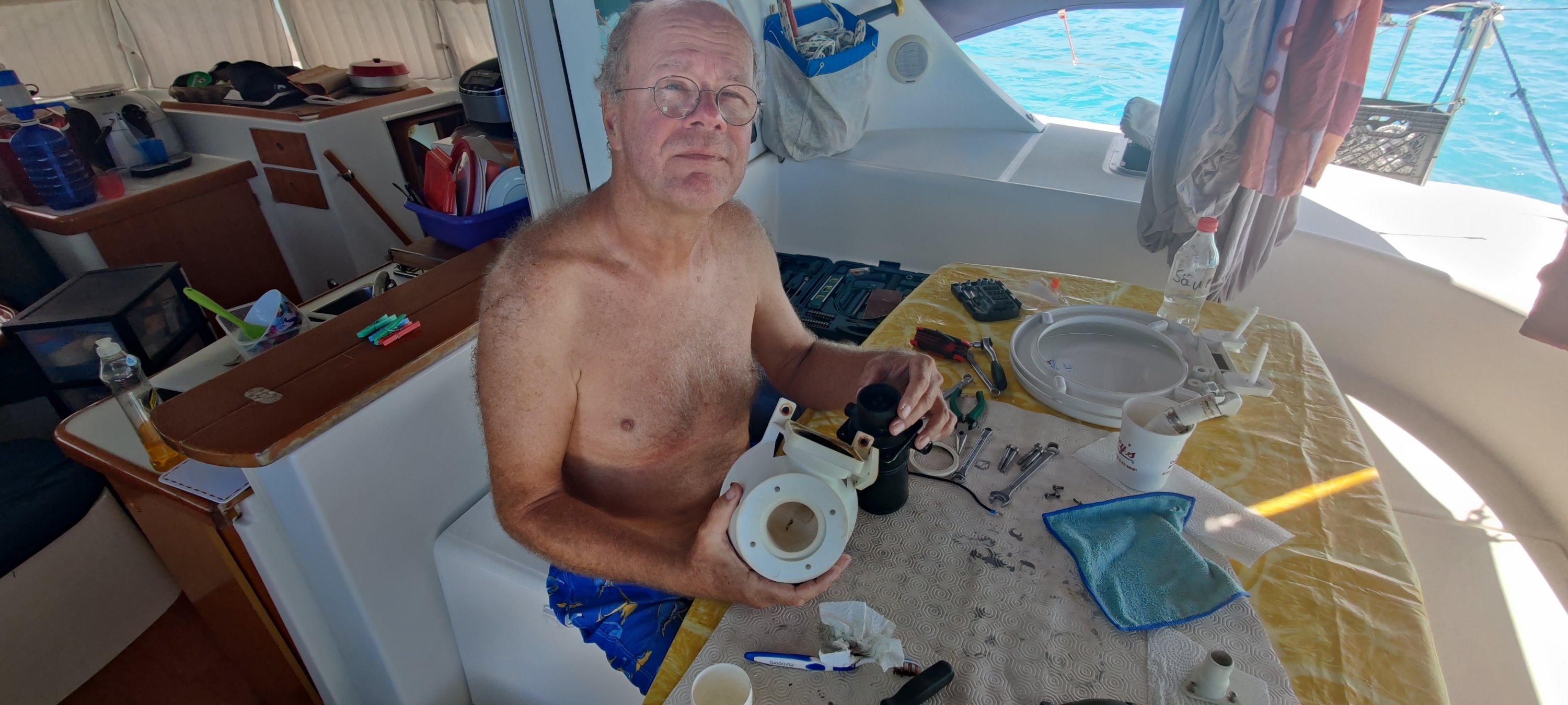 Zur Einstimmung, ja wir haben nicht die ganze Zeit nur Strand- und Partyleben. Das Reparieren und Pflegen das Bootes und der Ausrüstung nimmt einen deutlichen Teil unserer Zeit in Anspruch. Wir, oder besser Cherie hält das alles im Logbuch fest. Und da steht ne Menge drin.