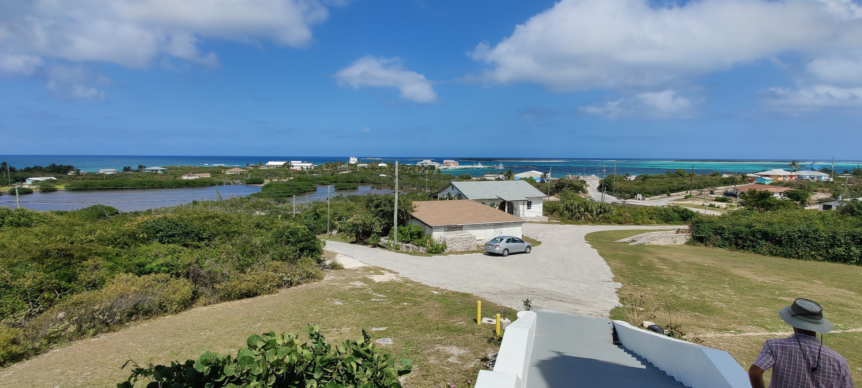 Ja, es gibt eine lange Straße von Nord nach Süd und wieder zurück, ist ja ein Mietwagen! Wir haben natürlich die drei Sehenswürdigkeiten abgegrast. Zuerst das Deans Blue Hole. Eine über 200 m tiefe Unterwasserhöhle inmitten einer Lagune. Da schwimmt dann sehr malerisch ein Gestell für Freediver. Ein merkwürdiger Sport!