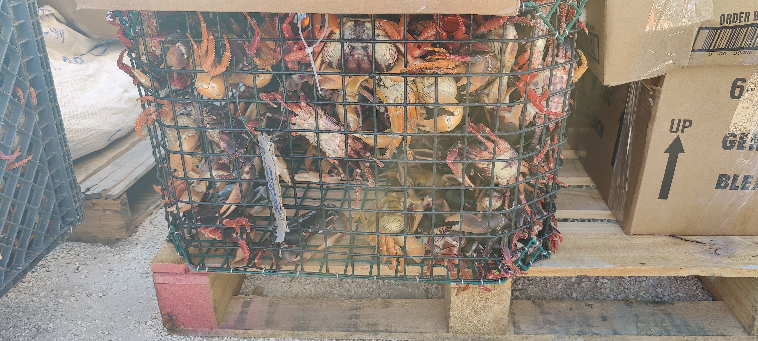 Ja, so schnell kommt man an ein Grundstück. Ein Schwatz mit Toni, Fischer für Long Island Krabben, bot mir großzügig ein Grundstück mit privatem Strand an. Natürlich auf der schönsten Insel der Welt! Wir trafen ihn beim Verschiffen seiner Krabben an ein Restaurant auf Nassau. Sollen Delikatessen sein, diese roten Krabben