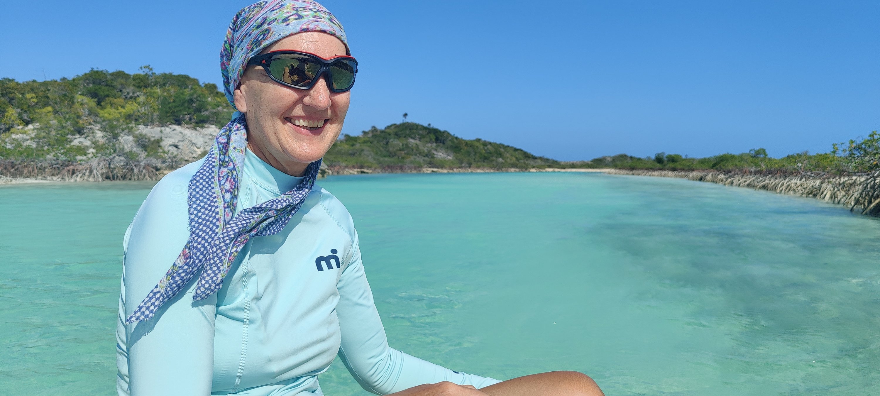 Die Fahrt ist ein Traum! Dieses Wasser und diese Farben. Seichte Wellen schieben uns nach Norden und der Wind fächelt uns Kühlung zu. Um 16:00 Uhr erreichen wir Nassau, Rose Island. Die iCat mit Sabine und Zoltan erwarten uns schon. Rose Island ist eine der vielen kleinen Insel um Nassau herum.