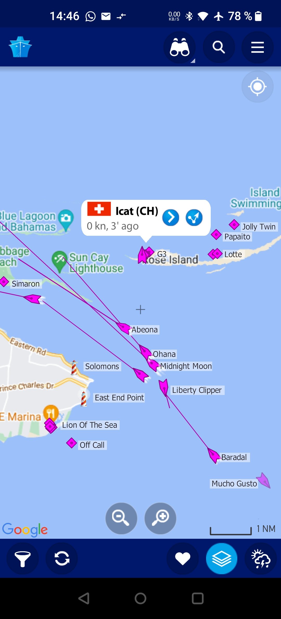 So, das war’s für heute. Morgen steht Tanken an und dann geht es auch schon bald weiter über die nächsten Inseln nach Freeport. Dem nördlichen Ende der Bahamas. Die USA rufen. 🗽