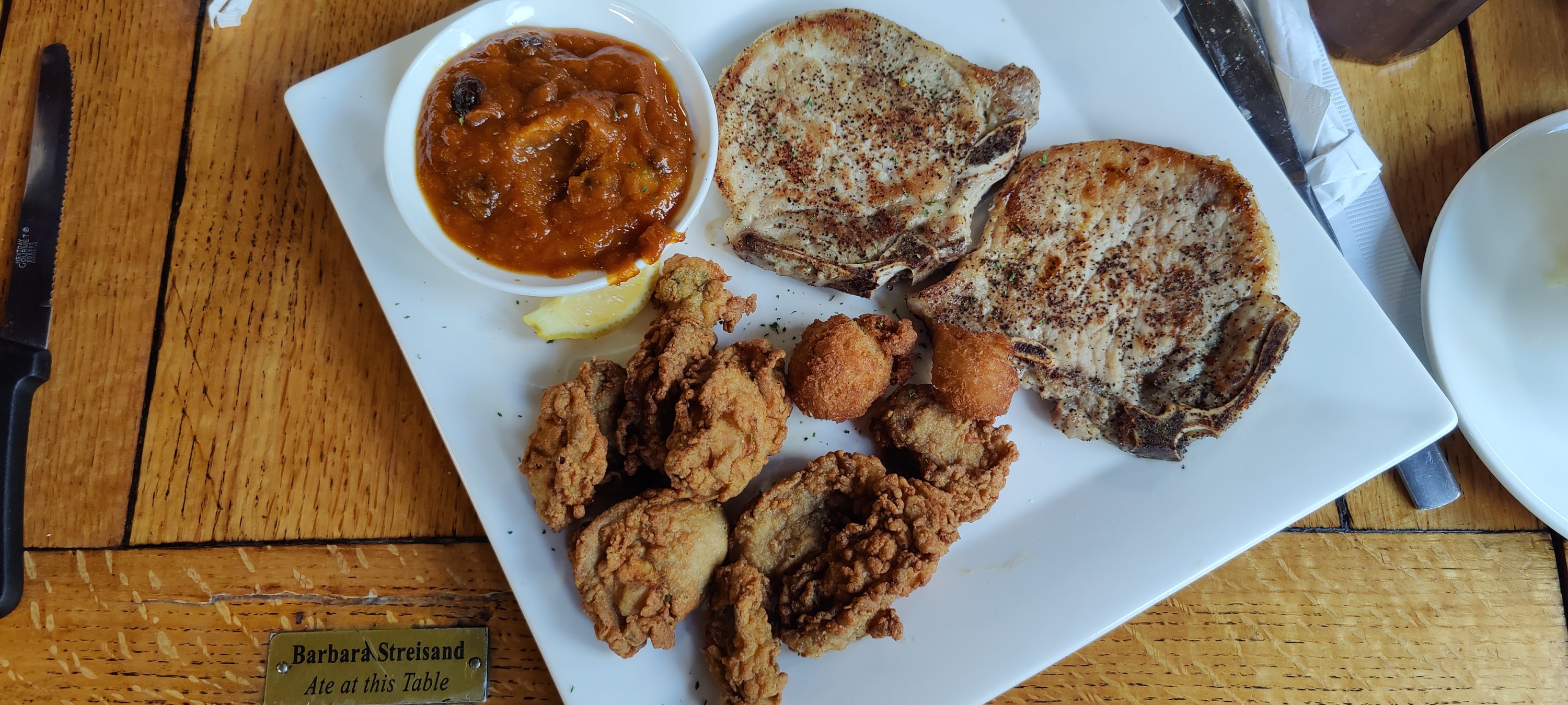 Charleston Maritime Center hat uns gut gefallen. Fußläufig zur City (!), preiswert und unkompliziert. Gestern haben wir alles vorbereitet, eingekauft und die Fahrräder verstaut. Zum Dinner sind wir ins Hymans Seafood Restaurant gegangen. Das (!) Restaurant von Charleston für Seafood.  Eine halbe Stunde warten und wir bekommen den Tisch an dem Barbara Streisand gegessen hat.