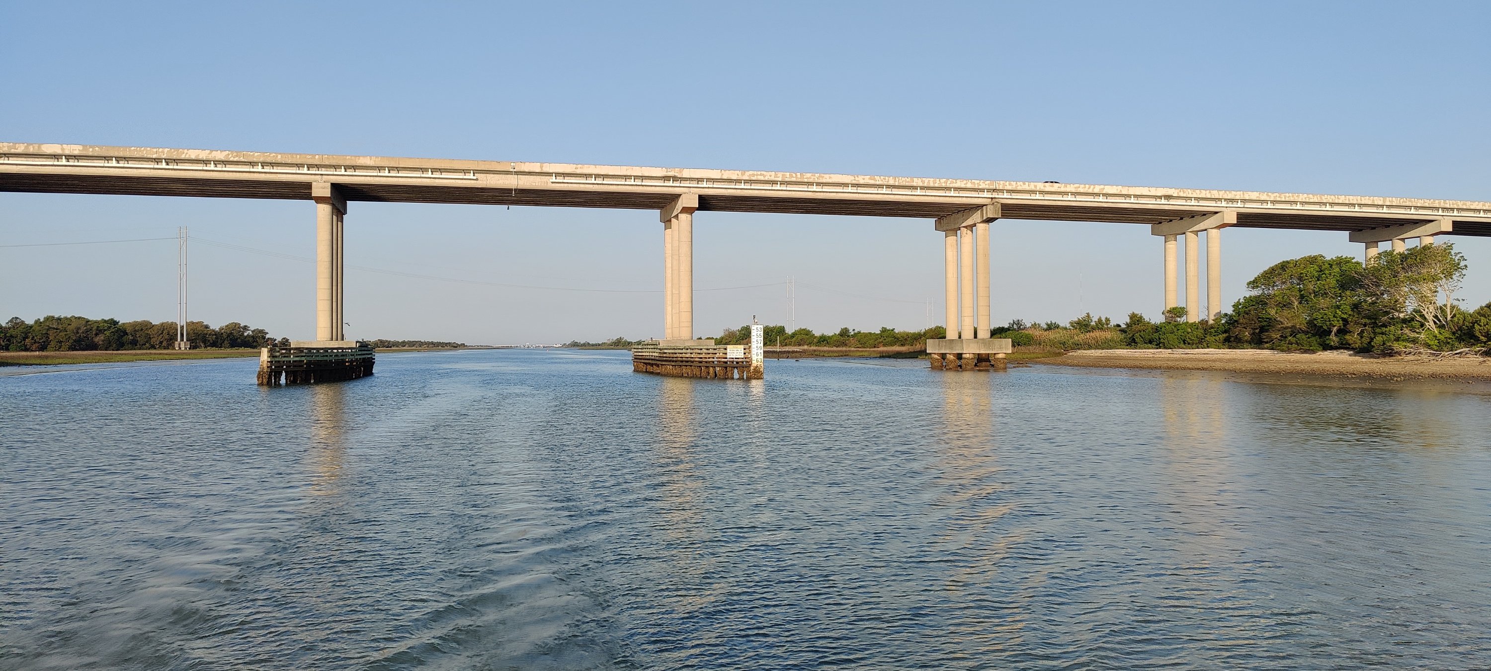 Nach den zwei Brücken geht es los. Der ICW ist in der Breite wie z.B. die Weser. Aber er ist nicht sorgsam ausgebaggert,sondern hat viele flache Stellen. So fahren wir gemütlich und langsam gen Norden. Den Kaffeebecher in der Hand.☕ Plötzlich ein Zisch und das Boot steht still. Der Kaffee schwappt durchs Boot. Wir stehen still. Erste Sandbank getroffen. Also Rückwärtsgang und. . .