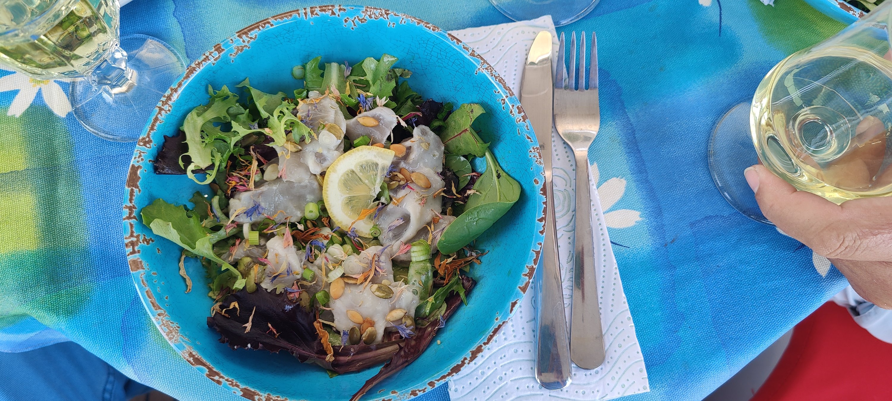 Auf der iCat gab es dann noch einen leckeren Salat vom eigenhändig gefangenen Mahi Mahi (Goldmakrele).