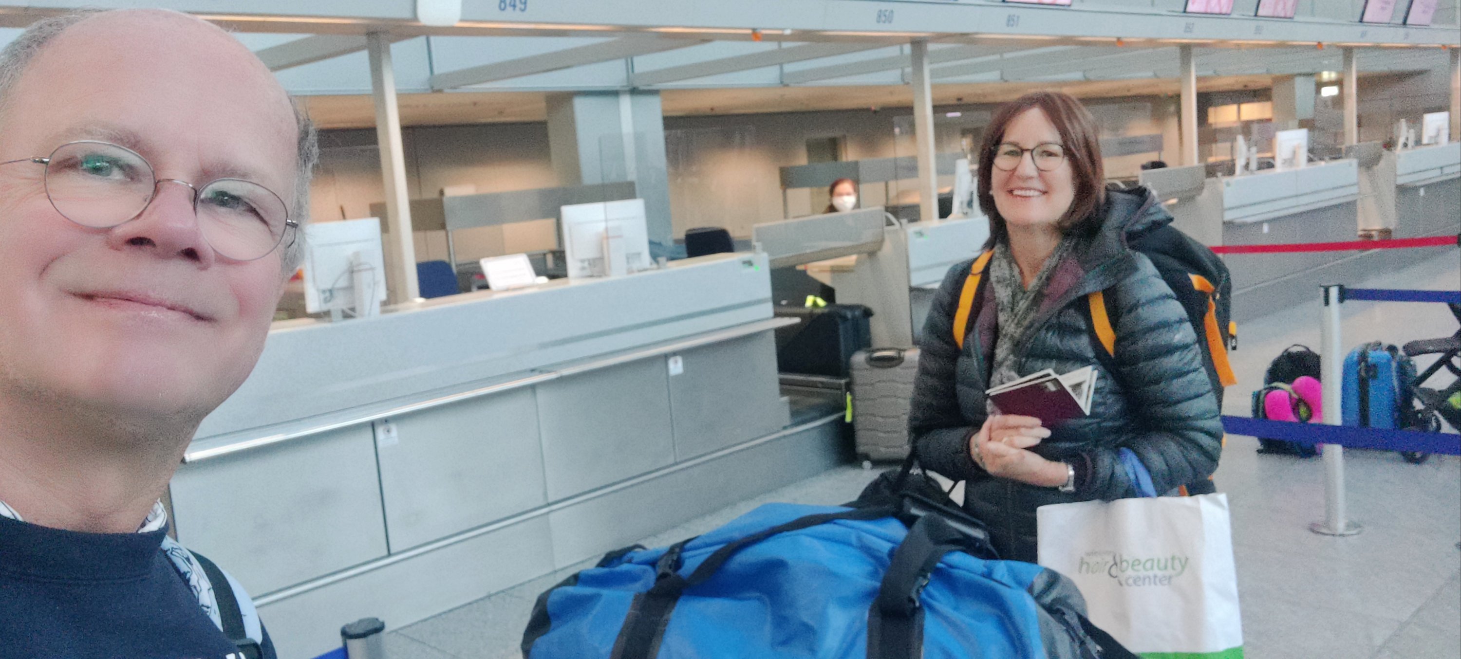 Pünktlich am Schalter zur Gepäckaufgabe.