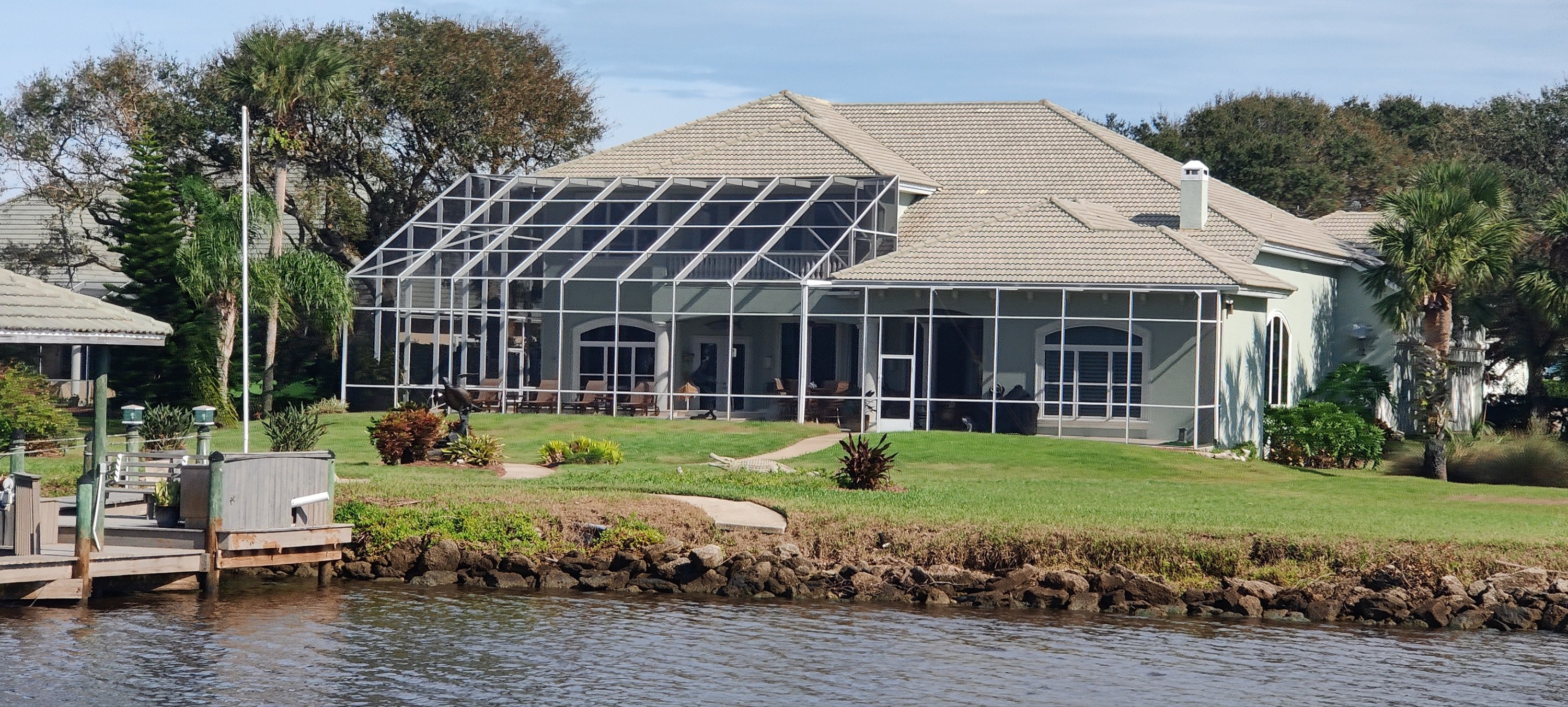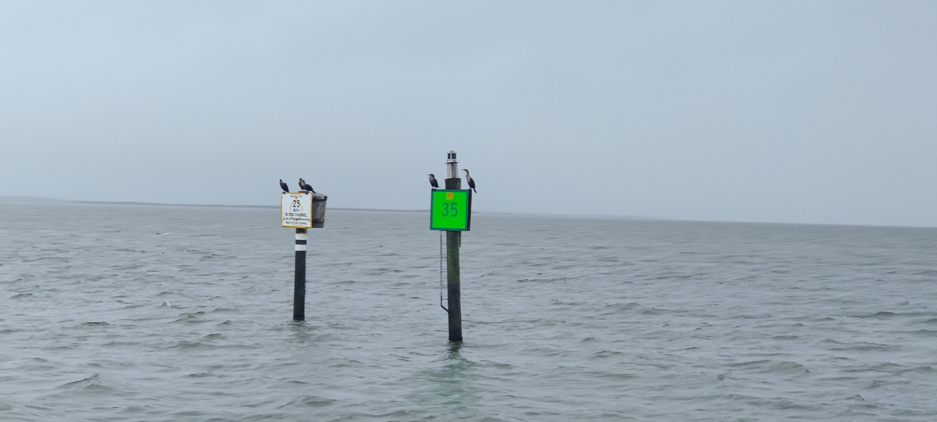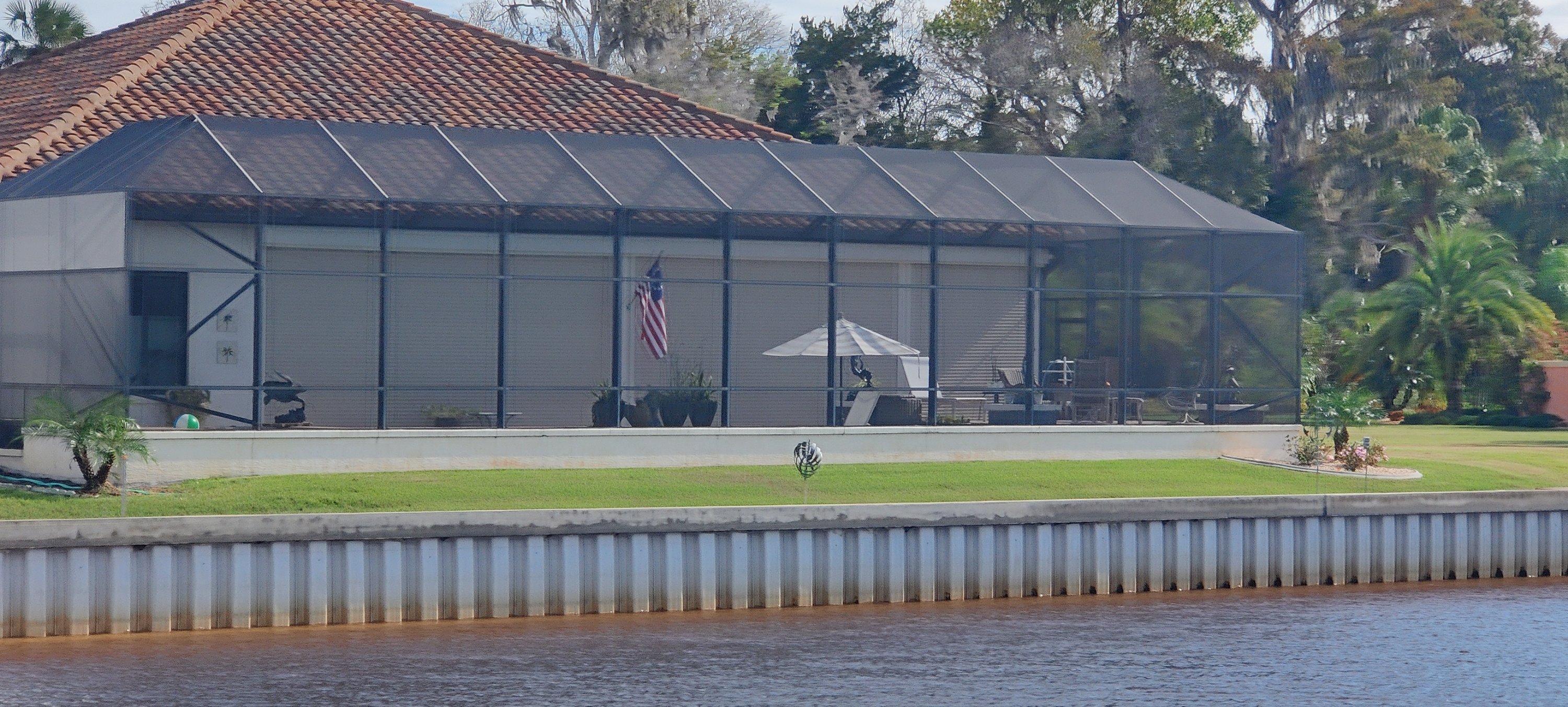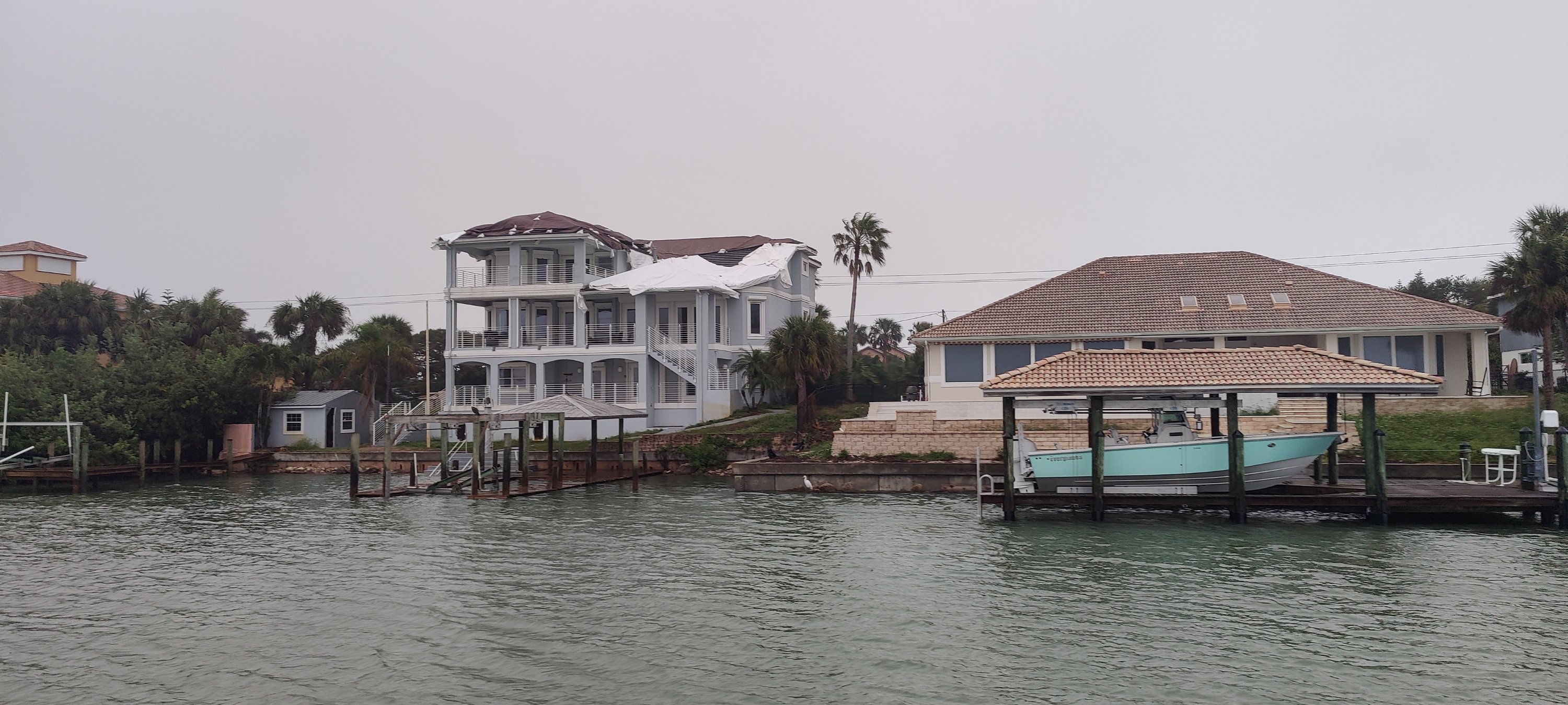 Aber der Weg hierhin war mal wieder speziell! Die Fahrt nach Titusville (gesprochen ‘Teituswill’) ist ca. 90 nm lang. Zuviel für einen kurzen Wintertag. Der erste Tag war durch schönen Wind von schräg hinten und bestes Wetter geprägt. Es war herrlich im Fahrradtempo durch die Landschaft zu gleiten. Hier ist der ICW oft mit Mangroven begrenzt und es geht abwechselnd an gepflegten Villen und Naturlandschaften vorbei. Etwas betrüblich stimmten die vielen gestrandeten oder halb versunkenen Boote am Ufer. Die zwei Stürme dieser Saison haben ihre Spuren hinterlassen. Auch manches Haus bedarf einer fachkundigen Hand!