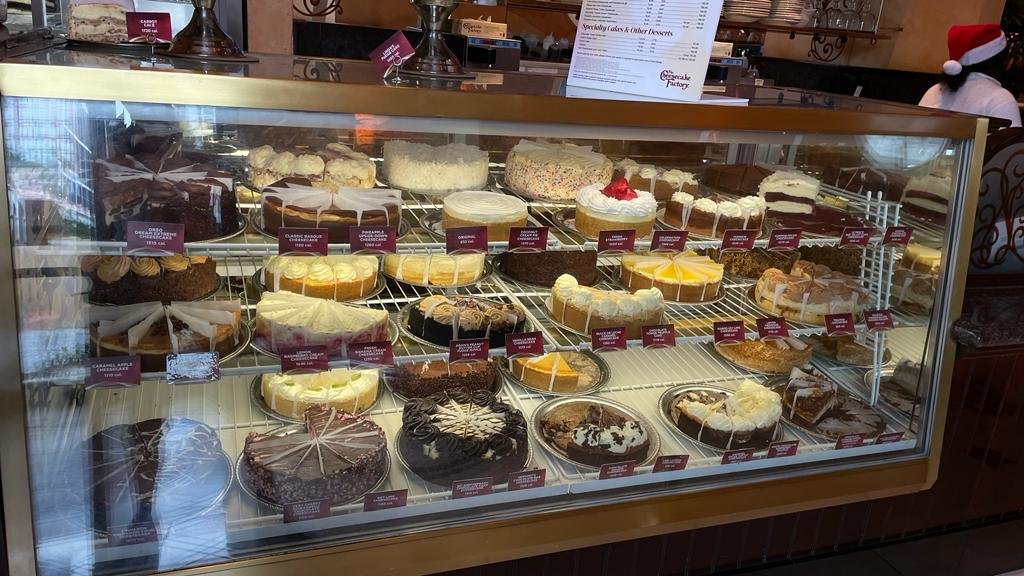 Ja, und wenn man dann mal Hunger hat, da gibt es jede Menge Auswahl. Am Square ist die “Cheese Factory” ein tolles Café und Restaurant. CheeseCake haben wir mit Käsekuchen unzureichend übersetzt. Es sind Torten, die unsere deutschen Cremetorten als Diätlebensmittel abgrenzen. In der Karte ist dementsprechend kein Preis, sondern die Kalorienzahl aufgeführt. Ich denke die Angaben sind geschönt!!!😀