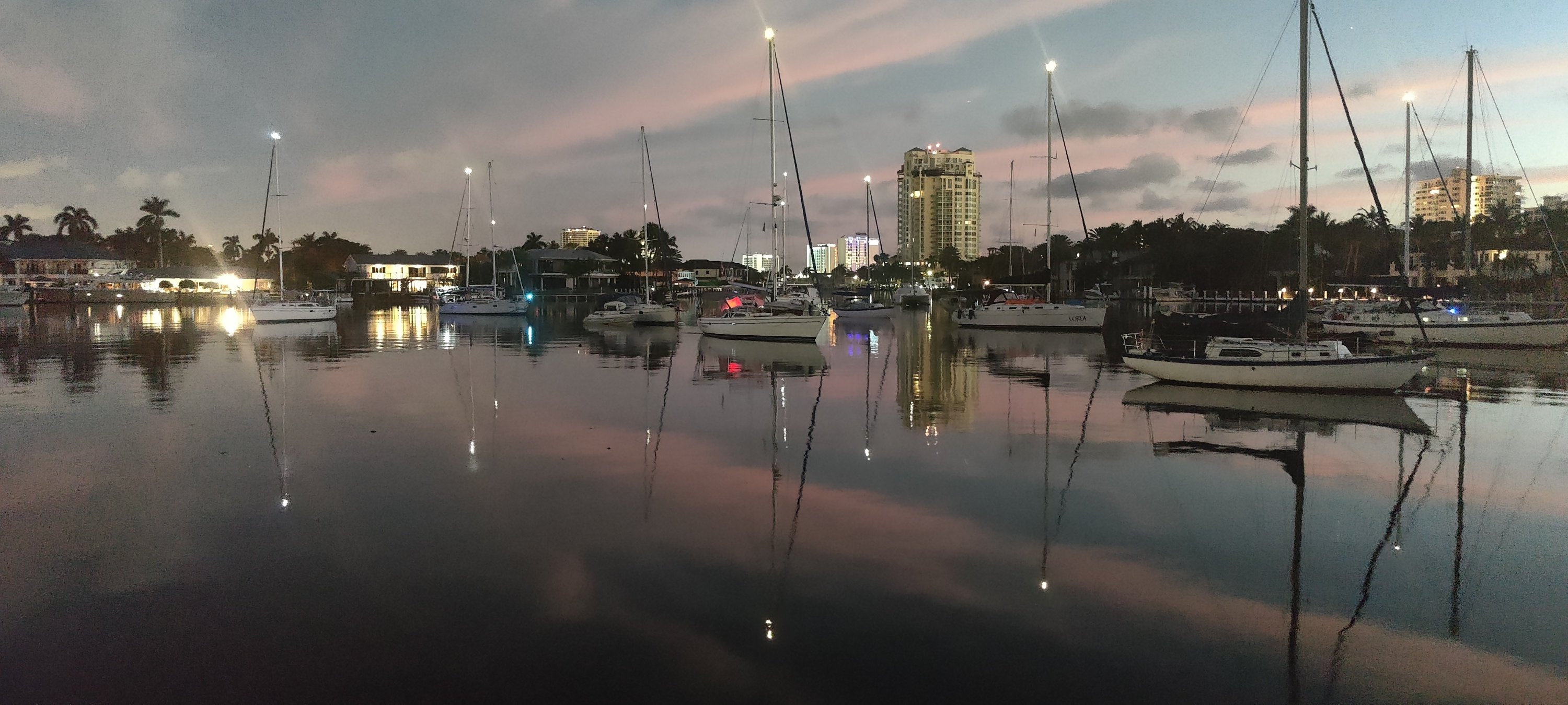 Hier in Fort Lauderdale liegen wir jetzt gut geschützt in der Sunrise Bay, einer Ausbuchtung des ICW. Direkt gegenüber ist ein Statepark. Das ist ein schöner Naturpark mit Dinghy-Dock und Zugang zum Fort Lauderdale Beach 🏖️