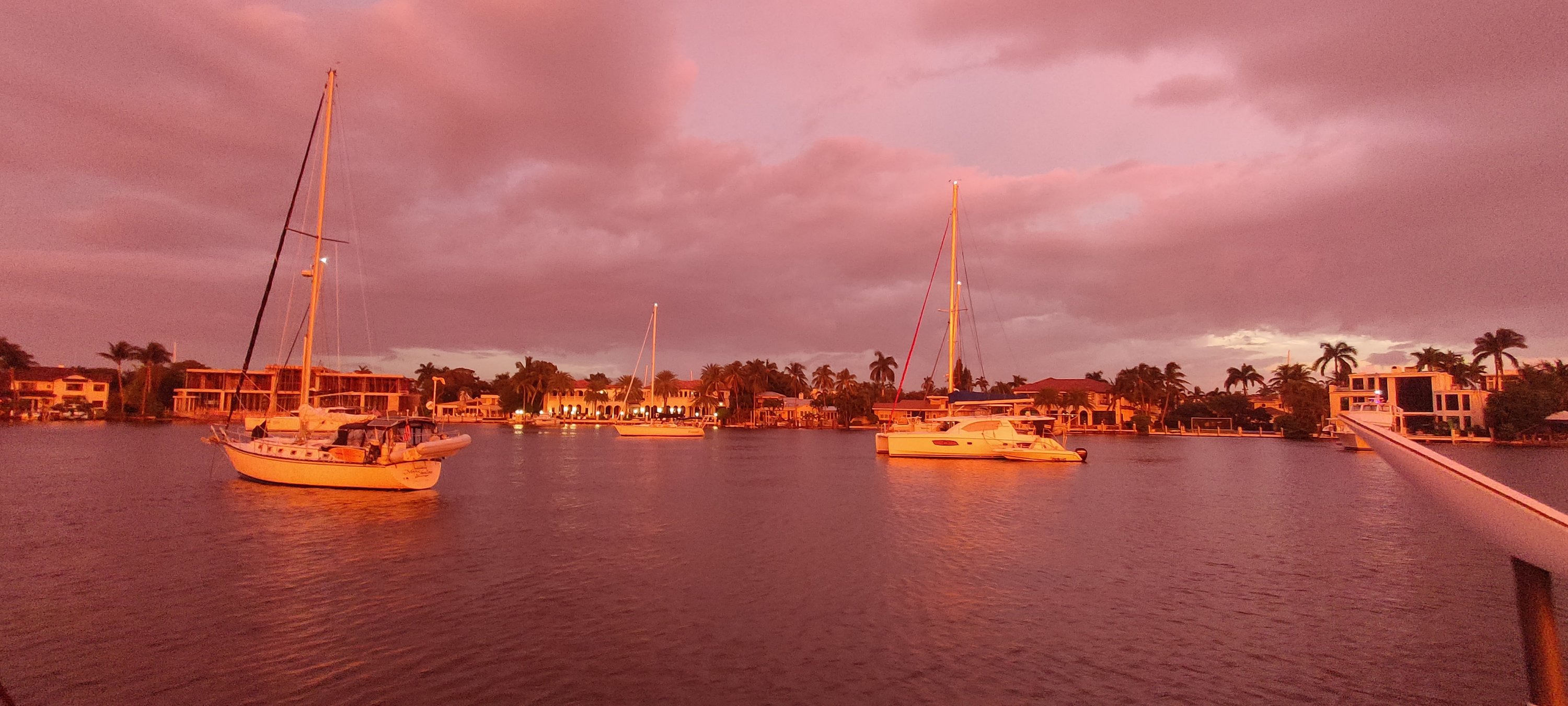 Als wir auf unserem Weg nach Fort Lauderdale hier an der Sunrise Bay vorbei kamen, war der Ankerplatz überfüllt. Es ist halt die Zeit für den Sprung von USA auf die Bahamas. Und wegen der Kältewelle sind dann viele Boote noch schnell rüber in die Wärme und das kristallklare Wasser der Bahamas. Gut für uns: mehr Platz im Ankerfeld.