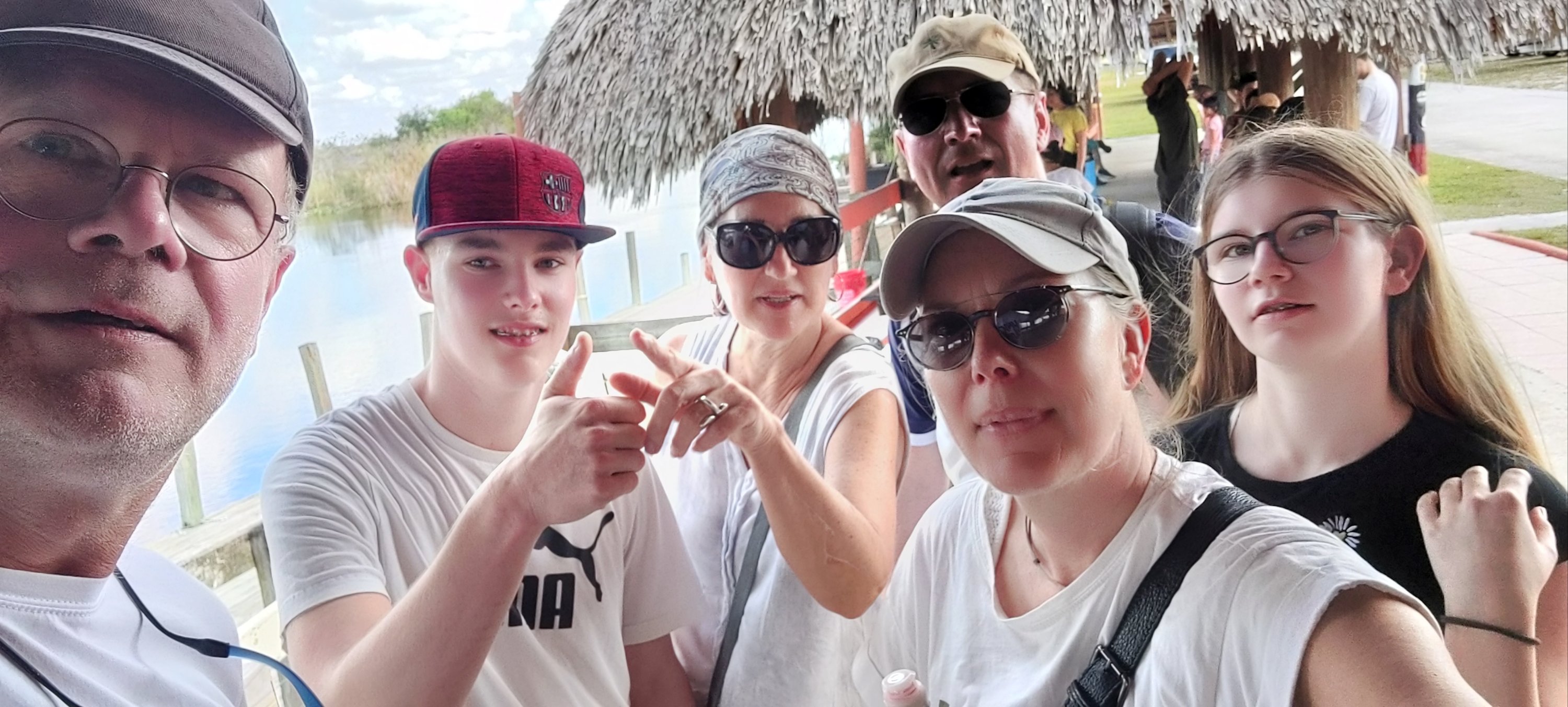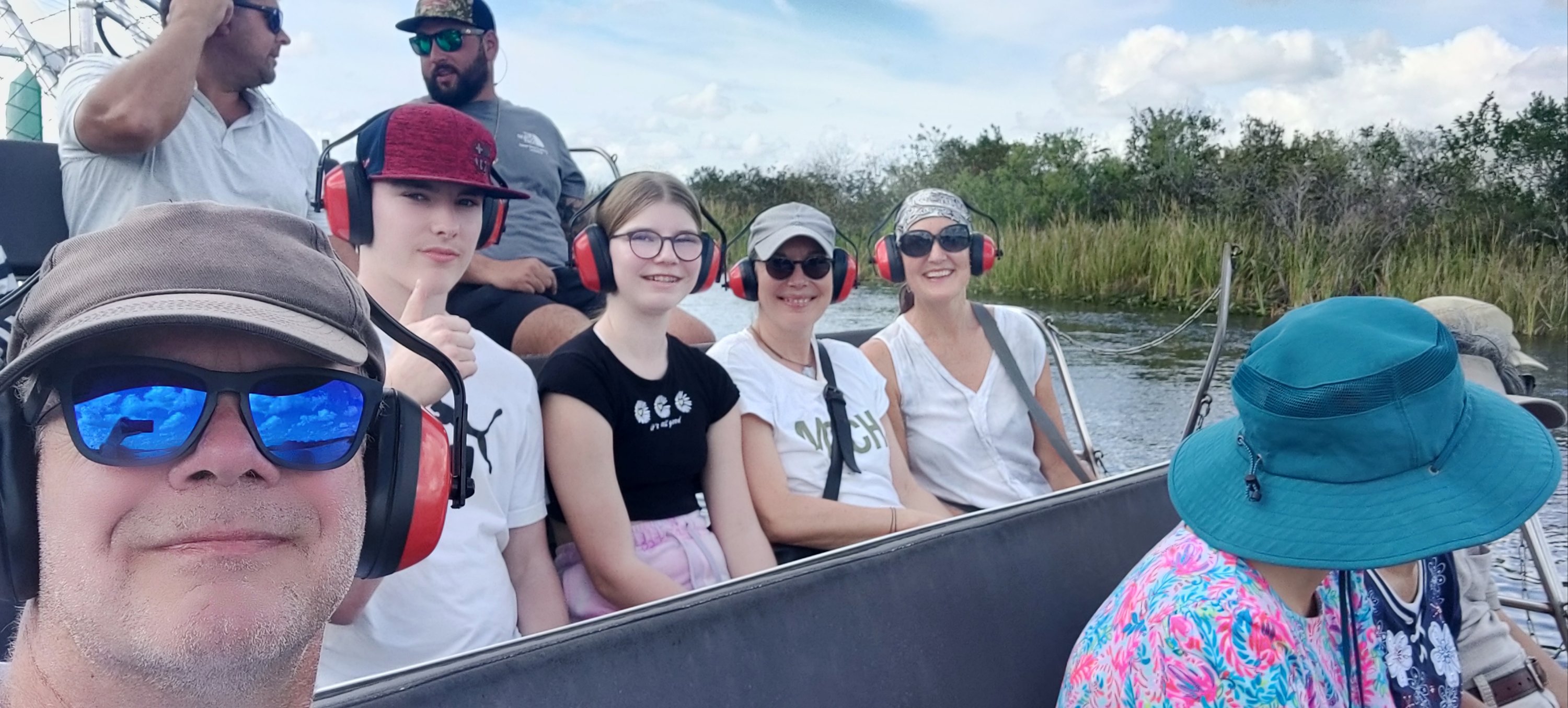 Und dann hatten wir Familienbesuch “zwischen die Jahre”. Zusammen haben wir eine Airboat- Tour in die Everglades gemacht. Das ist ein riesiges Sumpfgebiet im Zentrum von Florida. Airboats sind mit Flugzeugmotoren und Propeller angetriebene Schlitten/Boote. Die sind total flach und können über die Sümpfe hinweg gleiten, machen einen riesen Radau und jede Menge Fun!