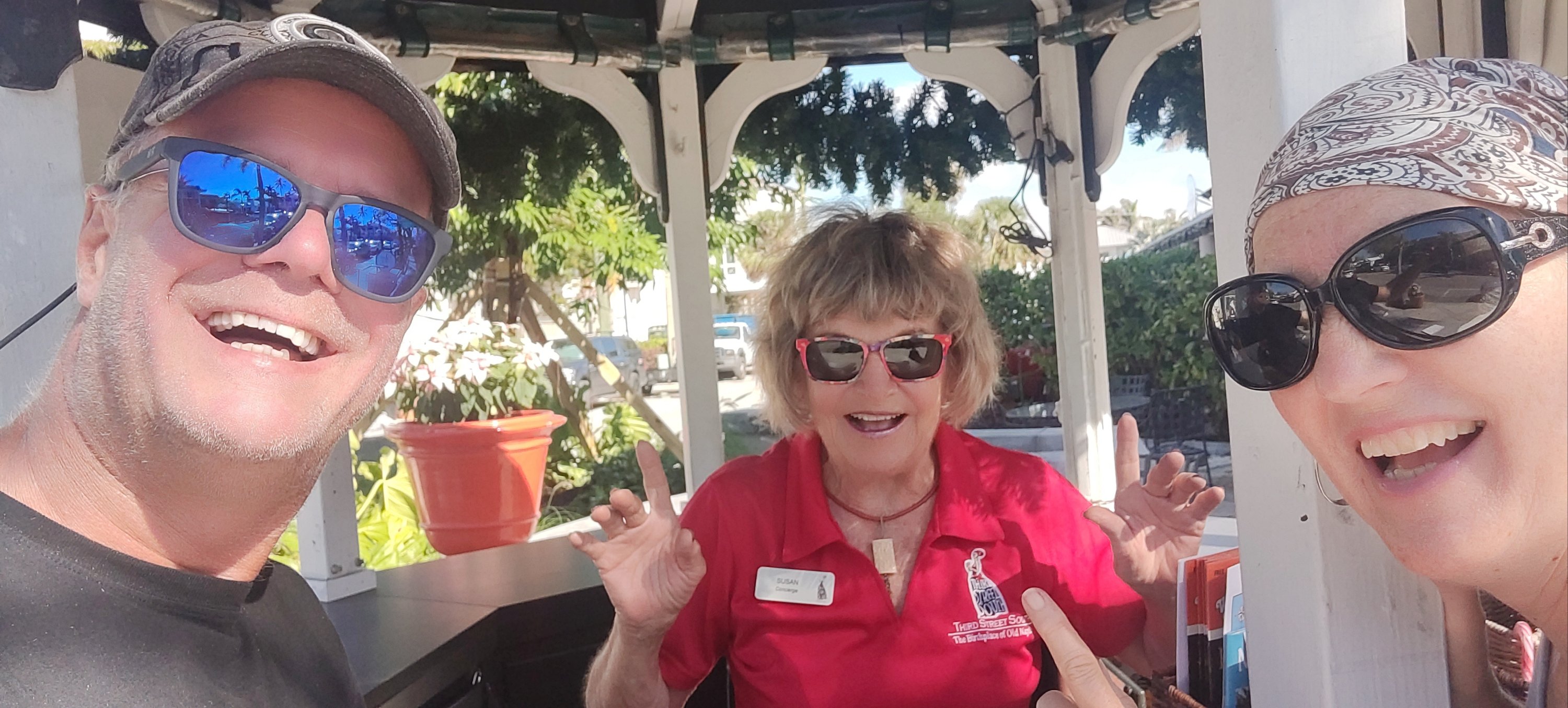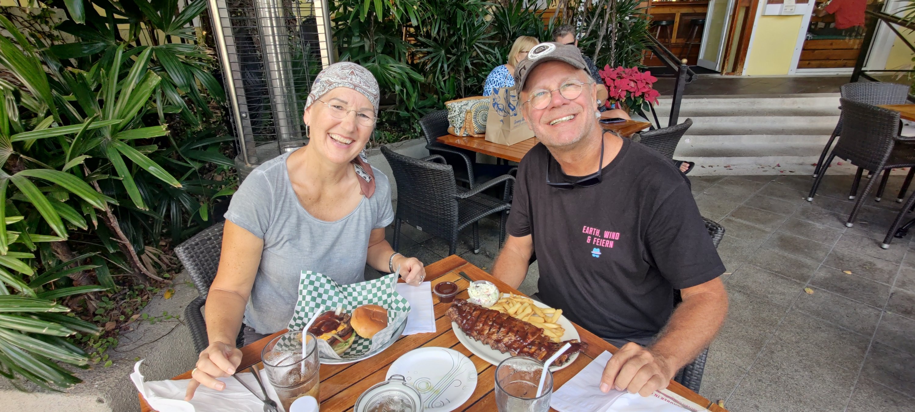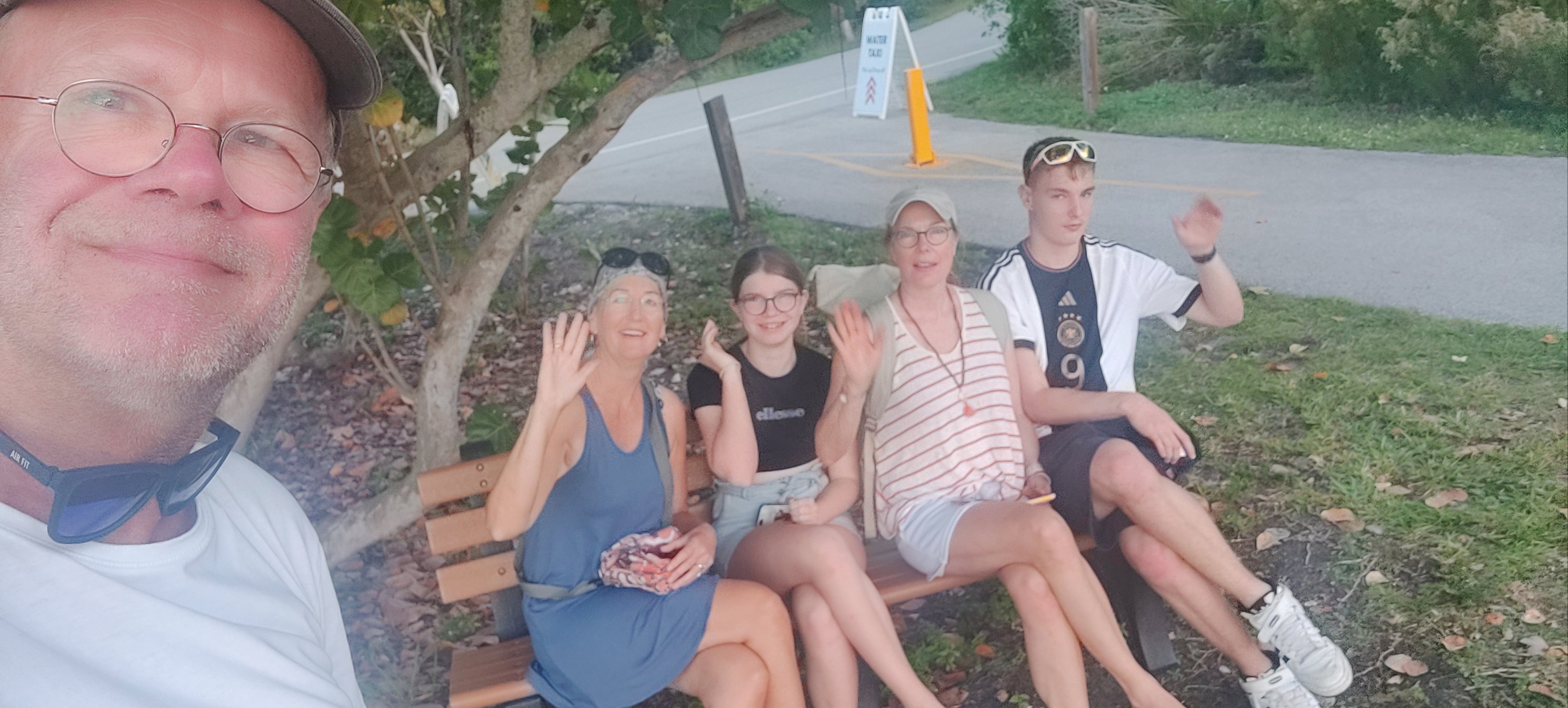 Ein schöner Frappuchino von Starbucks und dann wollen wir auch langsam zurück. So schlendern wir den Las Olas Boulevard Richtung Atlantik zurück in Erwartung, dass der Linienbus Nr 11 uns zurück bringt. Da hält neben uns so ein überdimensioniertes elektrisches Golfcart an und der Fahrer fragt uns, wo wir hinwollen und ob er uns dorthin fahren kann. Och wie nett. Wir schwätzen fleißig und es stellt sich heraus, er verfolgt auf YouTube einige Segler (SY UMA). Die Fahrt ist schnell vorbei, er setzt uns direkt im State Park ab! Super.