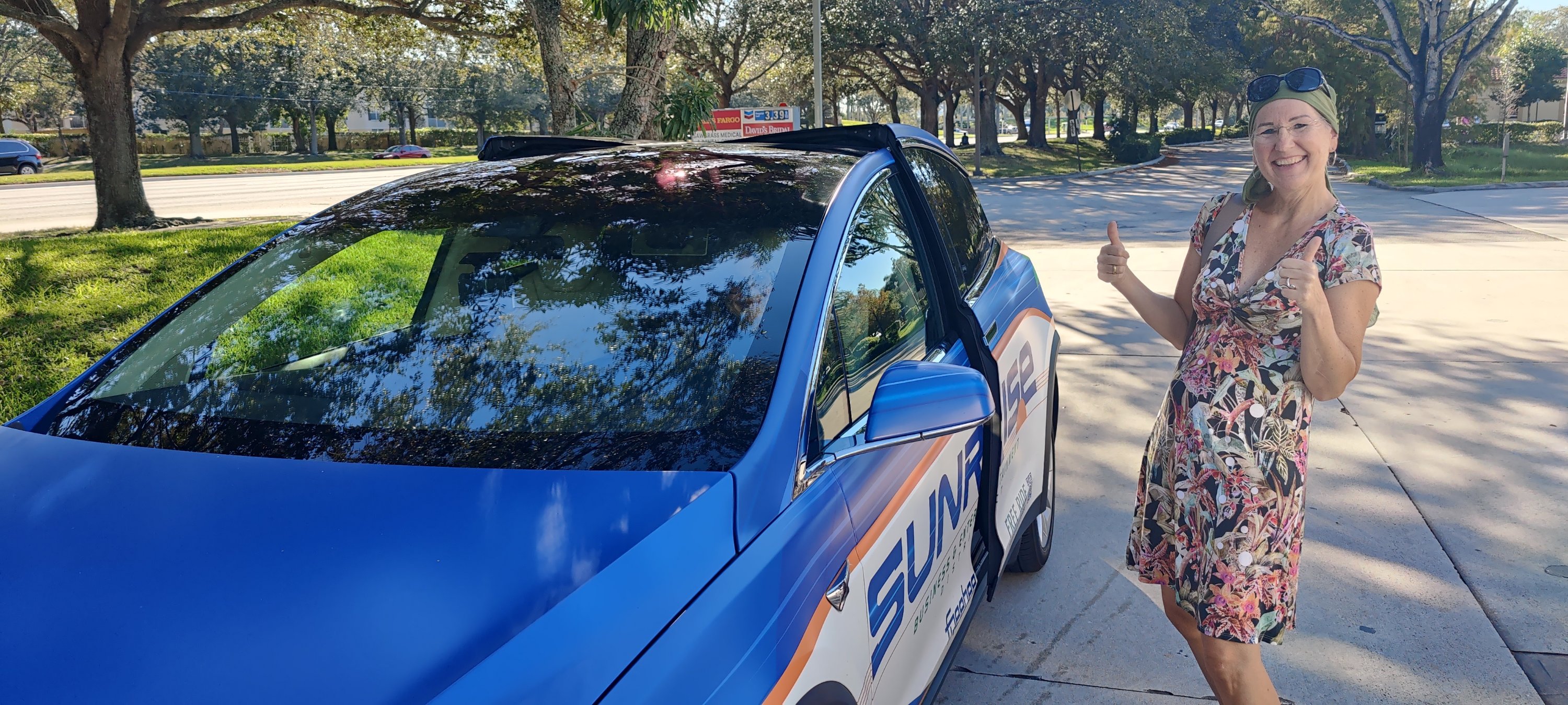 Auf dem riesigen Parkplatz machten wir wohl einen etwas desorientierten Eindruck. Da hält so ein riesiger Tesla neben uns und wir werden wieder gefragt, ob wir chauffiert werden wollen. Klar, aber diesmal nur im Bereich der Mall und der umliegenden Parkplätze. Aber so kommen wir super entspannt zur Bushaltestelle!