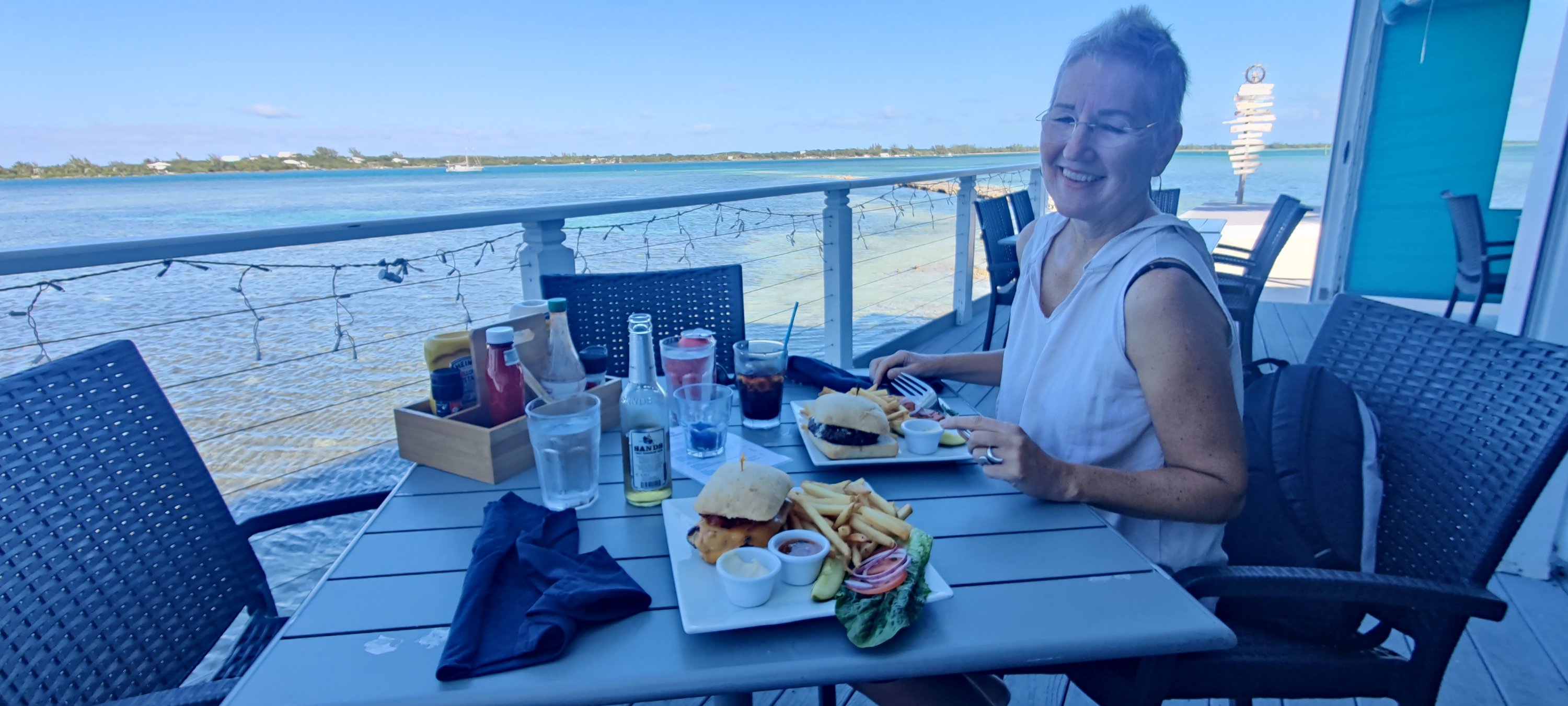Hier in Little Harbour ist eine der berühmten Bars der Bahamas, Pete’s Pub🍹🍻. Ja, das ist schon nett hier. Besonders hat uns gefreut, dass wir Birgit und Erich, zwei nette Österreicher, (sorry für den Fehler😘) unterwegs mit einem Charterboot von Moorings, dort getroffen haben. Sie gaben uns den Tipp zu ankern, da alle freien Mooringbojen privat waren. Und 30$ pro Nacht, das kann man in Rumpunsch umsetzen!