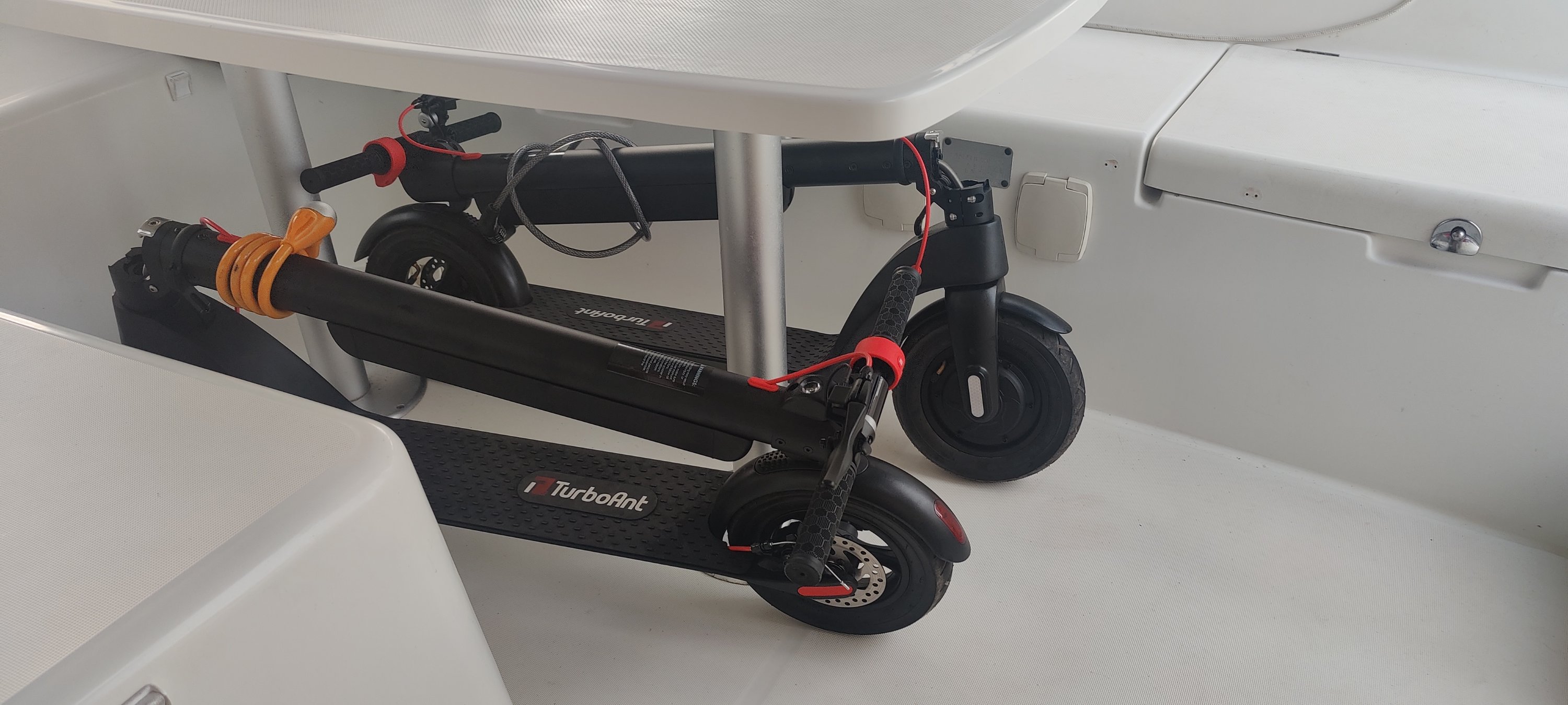 Wir hatten der Empfehlung von Brigitte und Frank von der SY Obelix folgend zwei Elektroroller, kurz Scooter 🛴 bestellt. Welch eine Freude. Pünktlich in die Marina geliefert. Damit ist man viel beweglicher und der Erkundungsradius erweitert sich erheblich. Der Hinweis von Frank von der SY Ventura, in jedem Fall auf 10″ Räder beim 🛴 zu achten war Gold wert. So sind auch die hier oft schlechten Straßen kein Problem. Da bei unseren Scooter die Batterien separat befestigt sind, sind sie auch sehr viel leichter im Dinghy zu handeln. Jetzt werden wir wohl unsere Klappräder verkaufen.