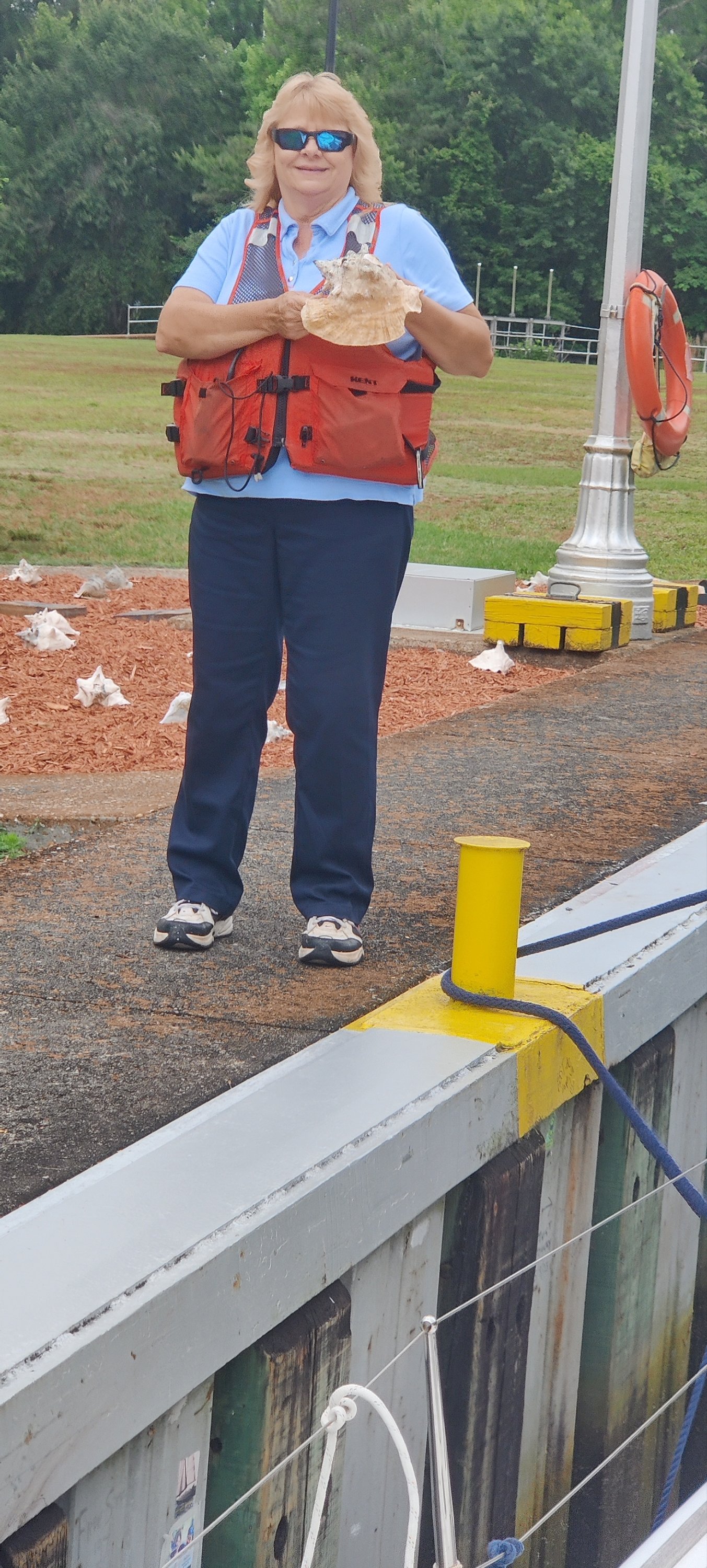 Diesmal halten wir am Visitor Center über Nacht und sind von der Herzlichkeit des Empfangs im Center ganz geplättet. Auch in der Schleuse ging es mit Thammy fast familiär zu. Gut, wir waren am Vormittag das einzige Boot in der Schleuse und über unser Mitbringsel, eine Conch-Schale, hat sie sich riesig gefreut.