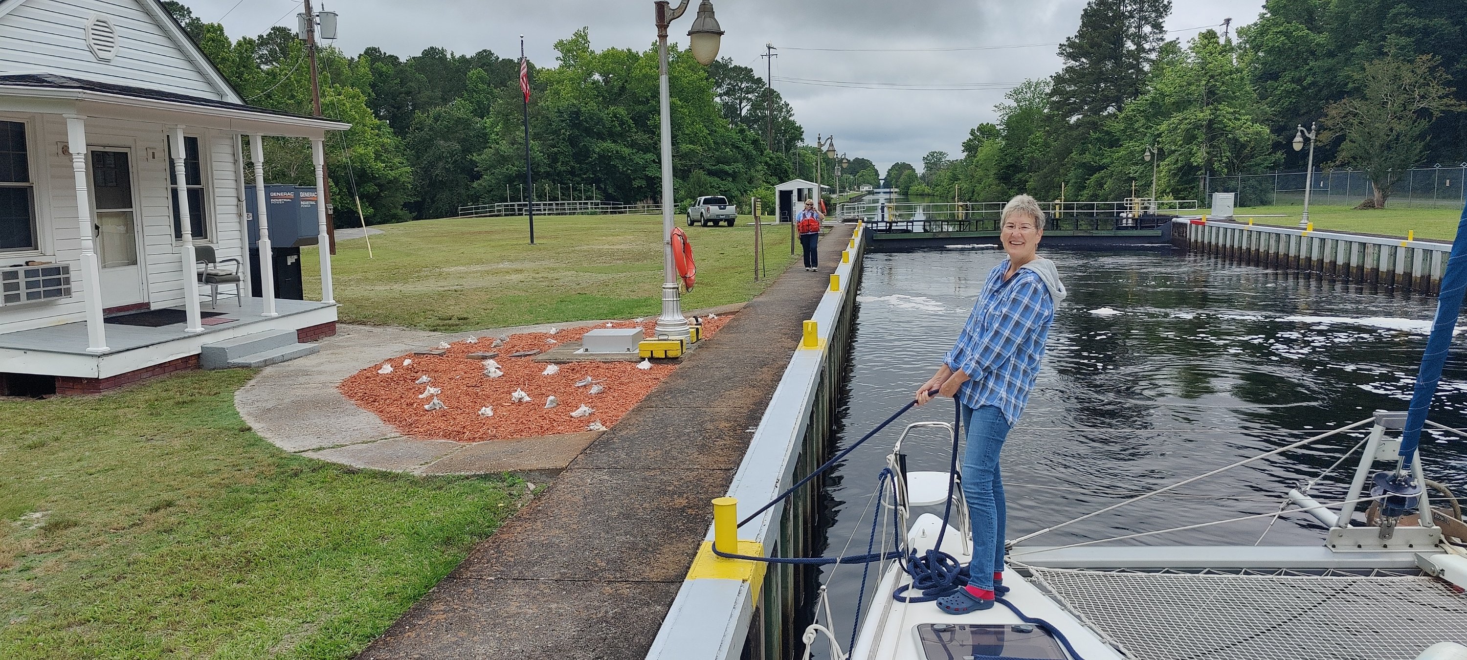 Coé hatte leckere Brownies gebacken und so wurde es ein feucht fröhlicher Nachmittag. Hier trennten sich mal wieder unsere Wege. Sie müssen deutlich früher in Cape Charles sein, der Flieger nach Kanada ist gebucht. Wir haben etwas mehr Zeit und fahren wieder die schöne Strecke des ICW durch den Dismal Swamp.
