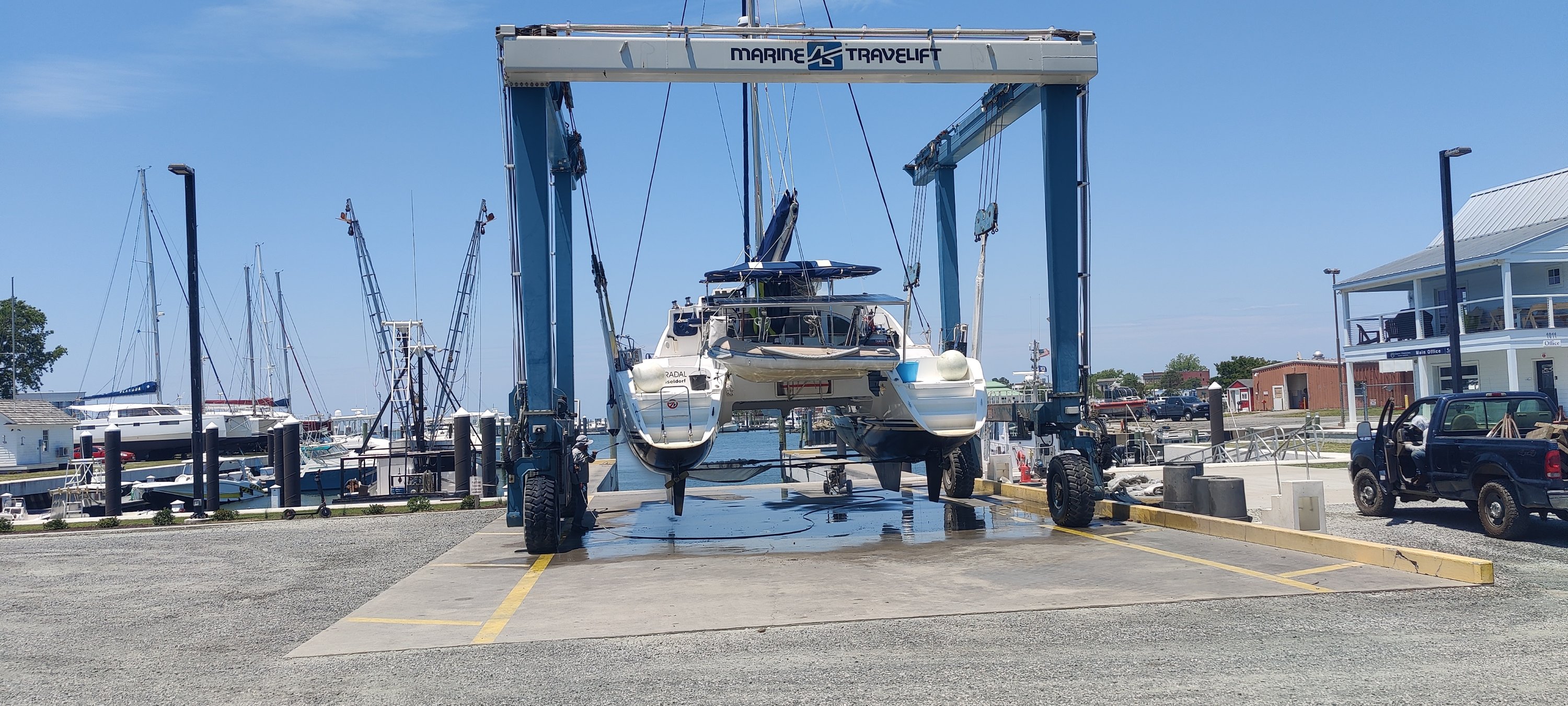 Nach dem Hafenfest heißt es Abschied nehmen. Olaf und Andrea haben ein Wetterfenster und wir haben den Termin zum Haul out in Cape Charles.