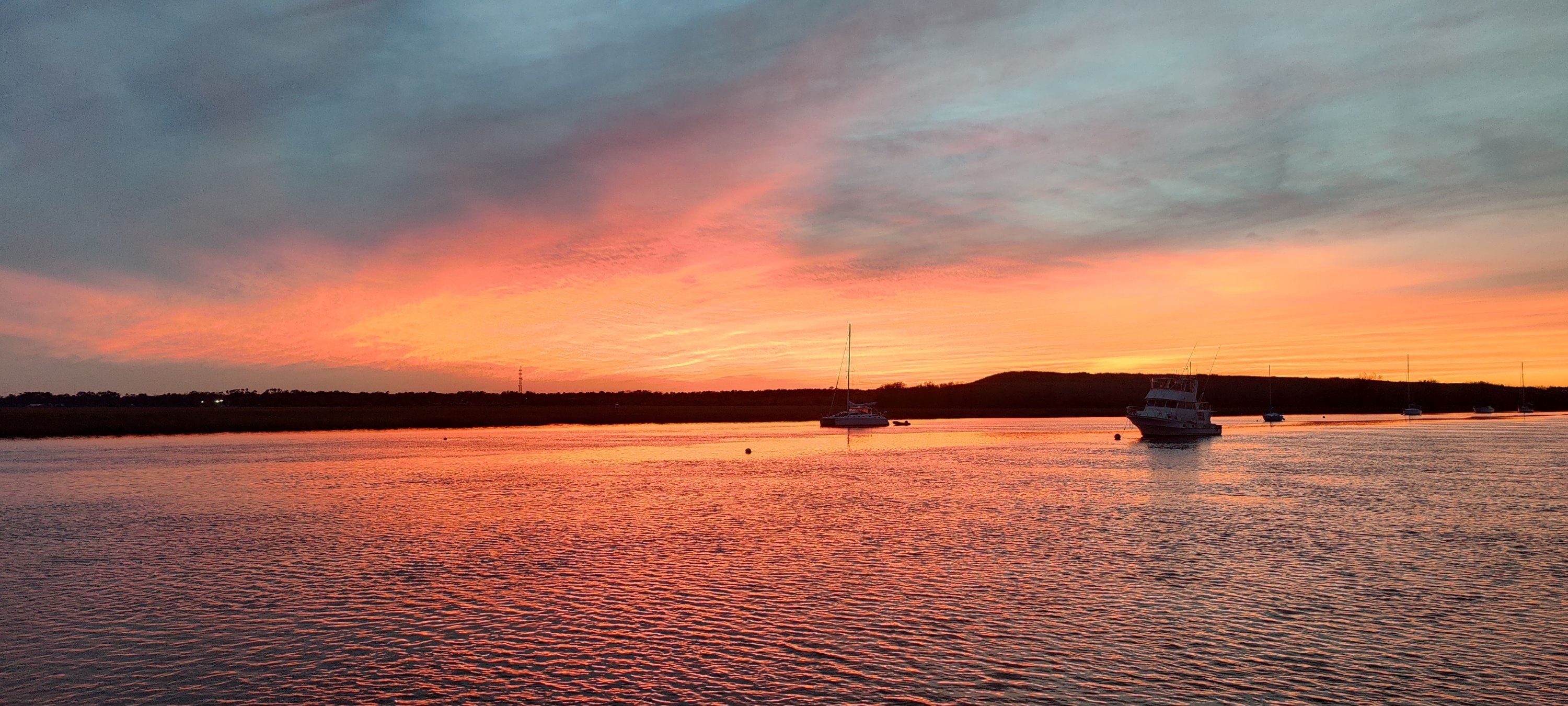 Also von Brigitte und Frank kräftig Abschied genommen und Anker auf. Aber wie blöd, die Anzeigen von Wind, Wassertiefe und Autopilot sind weg🙈. Das hatten wir schon ein paar Mal. Es sind ein paar Steckverbindungen die nach vielen Jahren in salzhaltige Luft etwas Zuneigung in Form von Kontaktspray verlangen. Trotz dieser Verzögerung kommen wir noch gut mit dem ablaufenden Wasser bis zum St. Marys Inlet. Hier übernachten wir. Dann geht es morgen Früh gegen 6:00 Uhr auf den Atlantik. Wir wollen vor 16:00 Uhr in St. Augustine ankommen, sonst haben wir Gegenströmung im Inlet. Das wäre blöd…