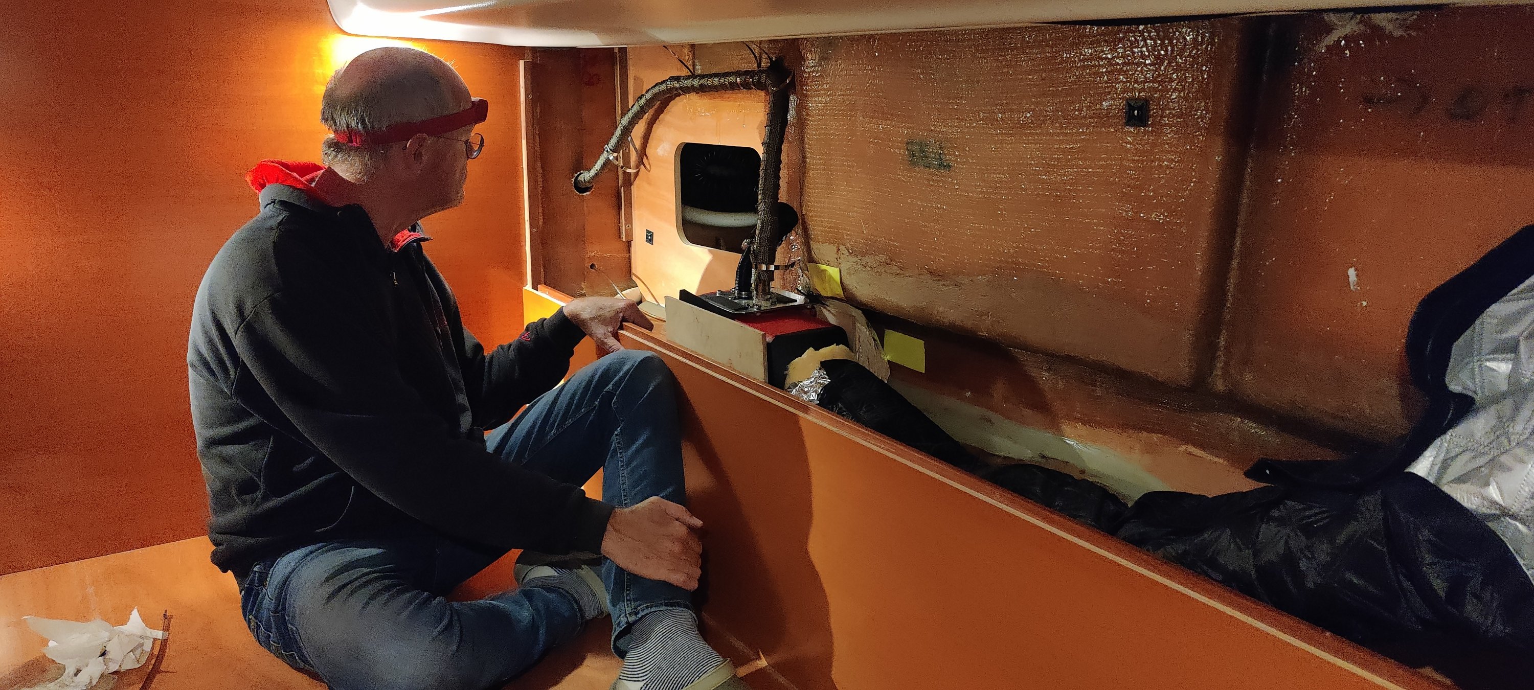 Der Umbau musste an nur einem Tag erfolgreich gelingen, denn tags darauf waren 2⁰C angesagt. Mit etwas Mühen hat es geklappt. Jetzt wird es muckelig warm im Boot. Genau rechtzeitig, denn die nächsten Tage wurden lausig kalt.