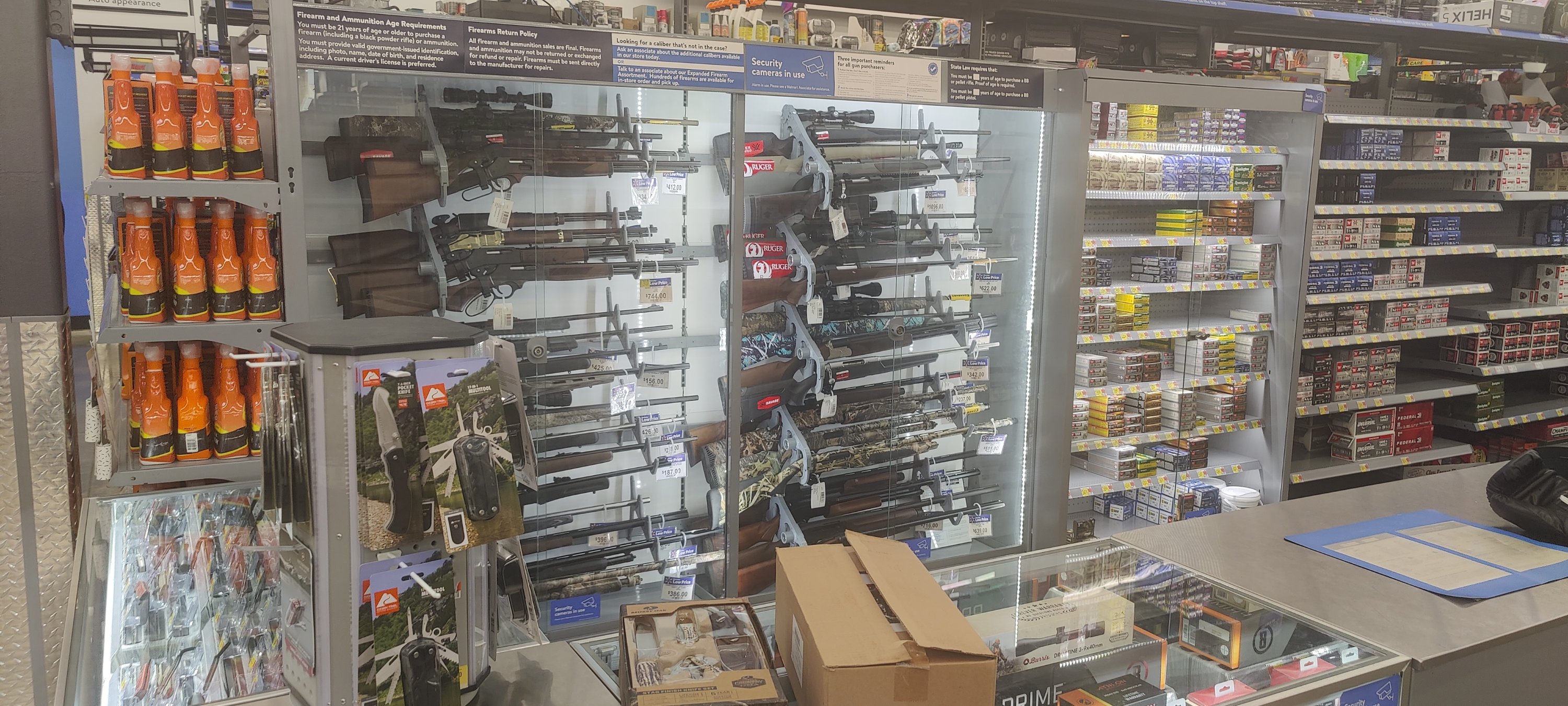 Gerne haben wir das Angebot von Brigitte angenommen mit ihr zum Einkaufen zu fahren. 😘🙏 Walmart, eine große Supermarktkette, ist hier echt günstig. Neben einer Auswahl, wie wir sie früher von den großen Realmärkten bei uns kannten, gibt es auch einige Besonderheiten. So bekommt man gerne auch ein paar Flinten, bei Bedarf in Pink oder Grün zum Vorzugspreis. Alles ist möglich!🫢