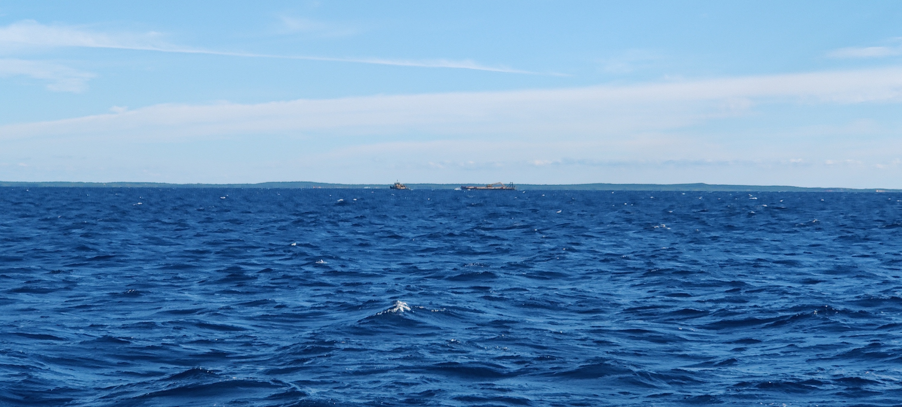 Es läuft gut, nach einiger Zeit sehen wir Frachter und Tanker. Wenn sie uns zu knapp passieren sollten, funkt Cherie sie an. Die freundliche Anfrage, ob sie uns sehen, wird nett beantwortet und der chinesische Tanker macht einen großen Schlenker um uns. Wie nett!😀
